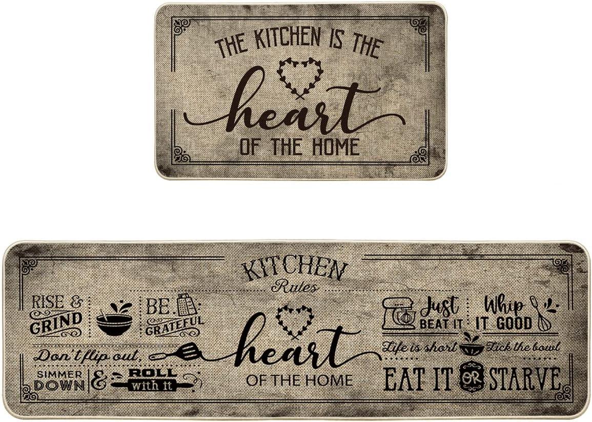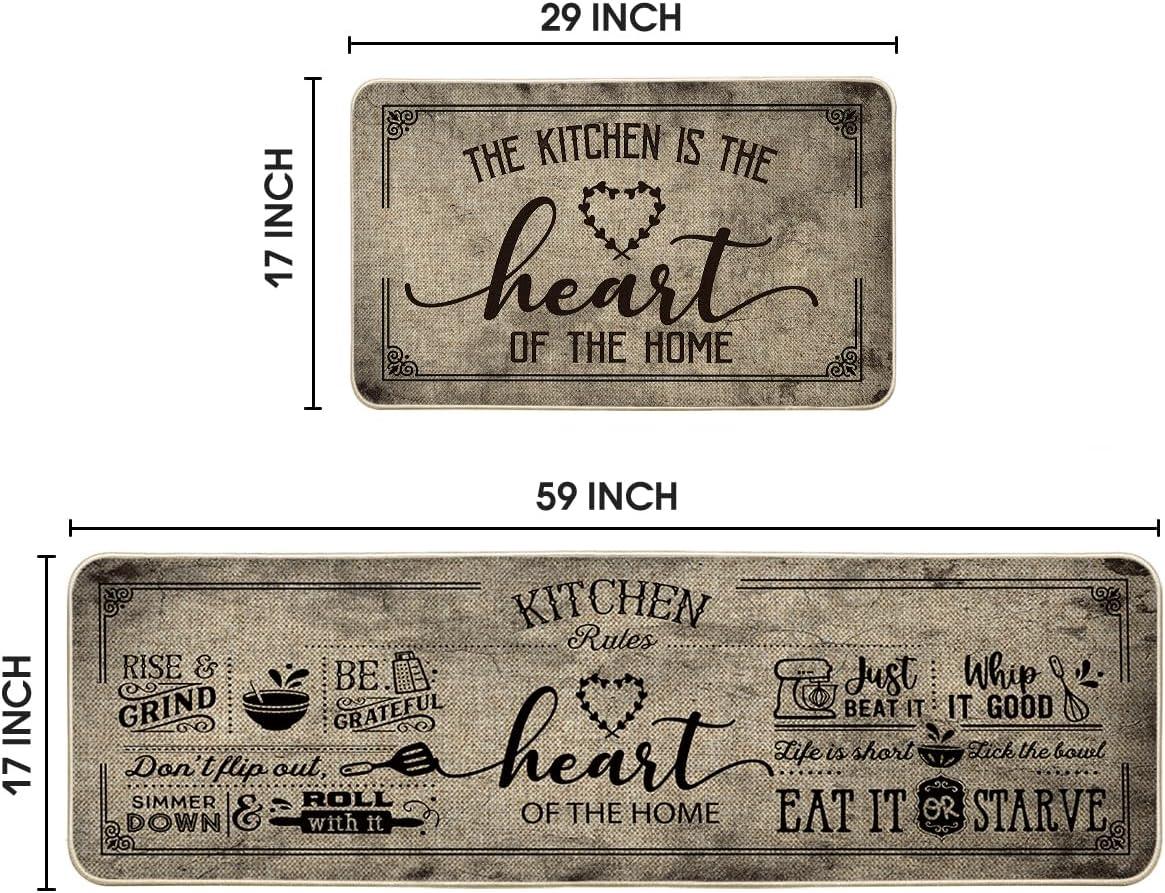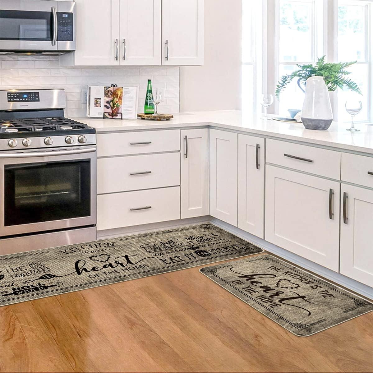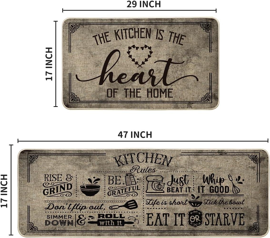 Artoid Mode Black Cooking Sets Kitchen Mats Set of 2, Seasonal The Kitchen is The Heart of The Home Holiday Party Low-Profile Floor Mat for Home Kitchen – 17×29 and 17×47 Inch(Beige)