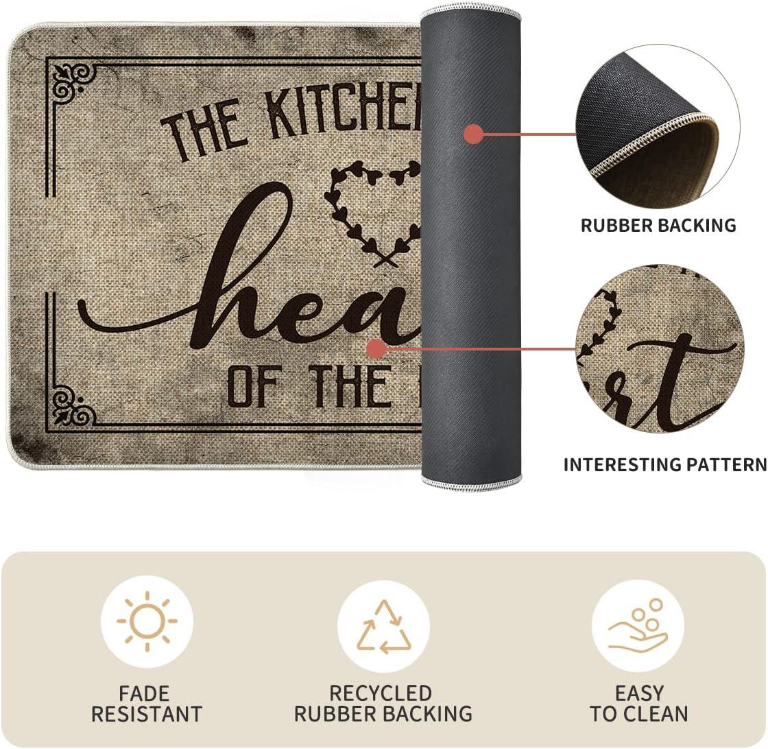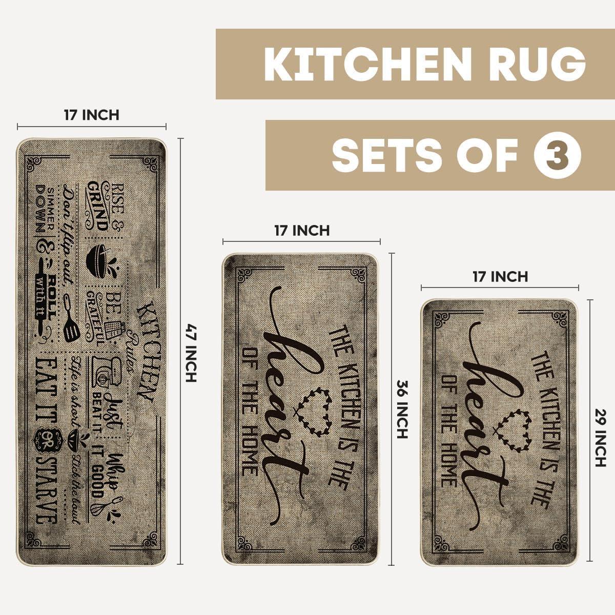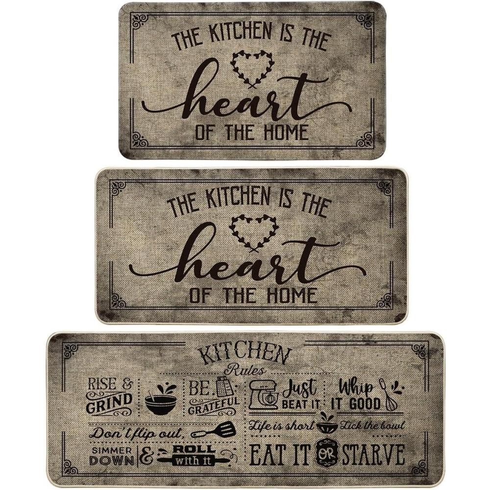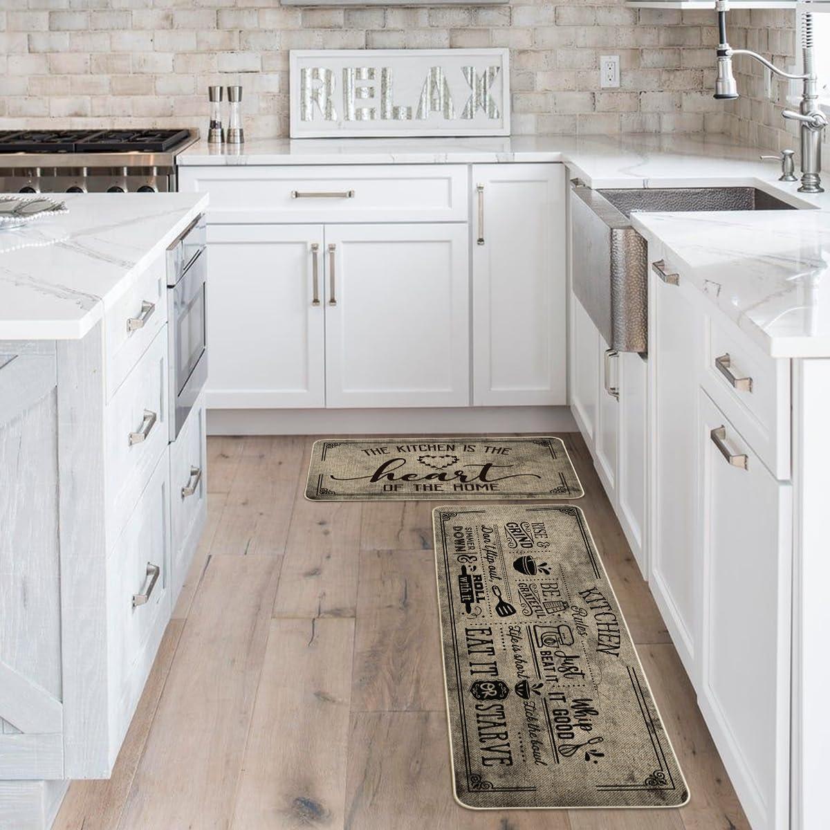 Artoid Mode Black Cooking Sets Kitchen Mats Set of 2, Seasonal The Kitchen is The Heart of The Home Holiday Party Low-Profile Floor Mat for Home Kitchen – 17×29 and 17×47 Inch(Beige)