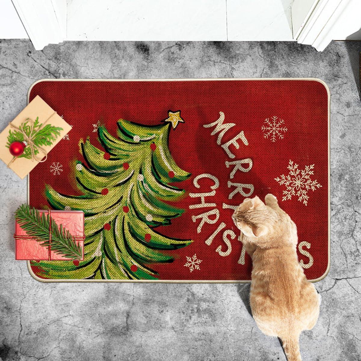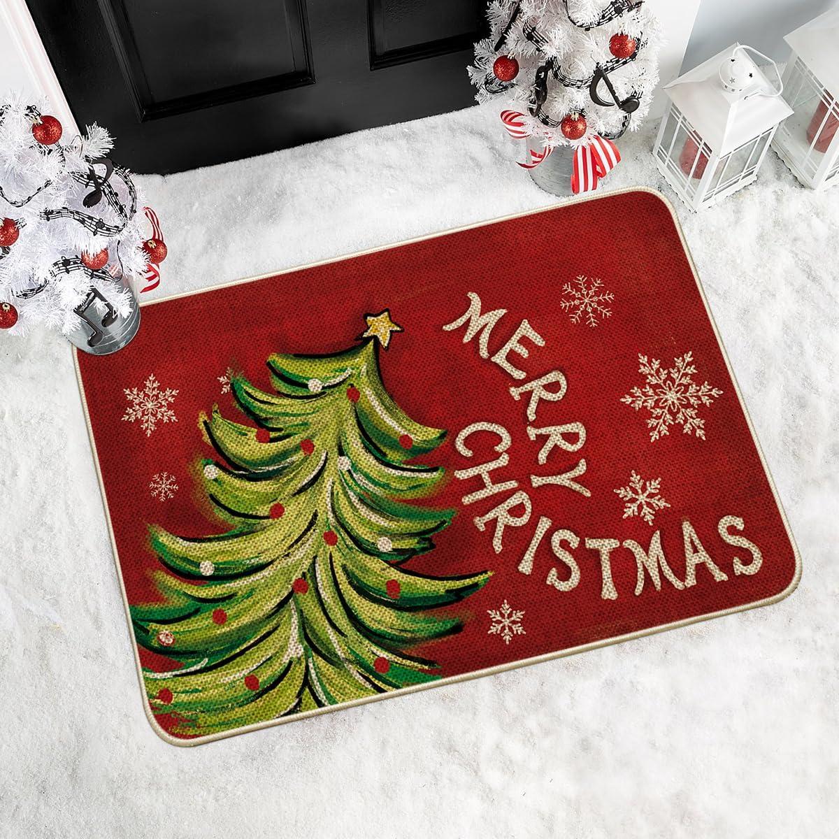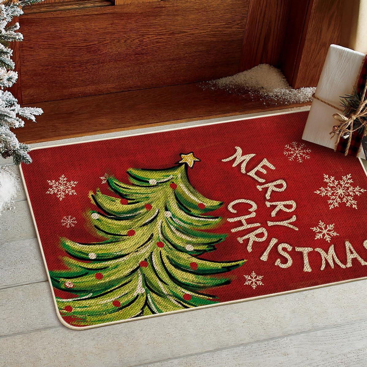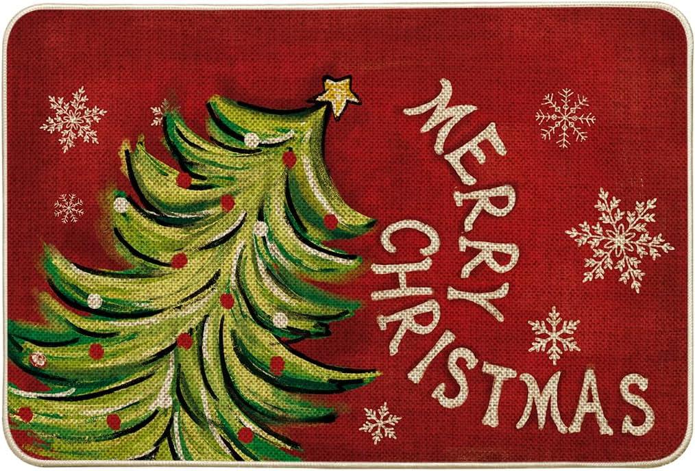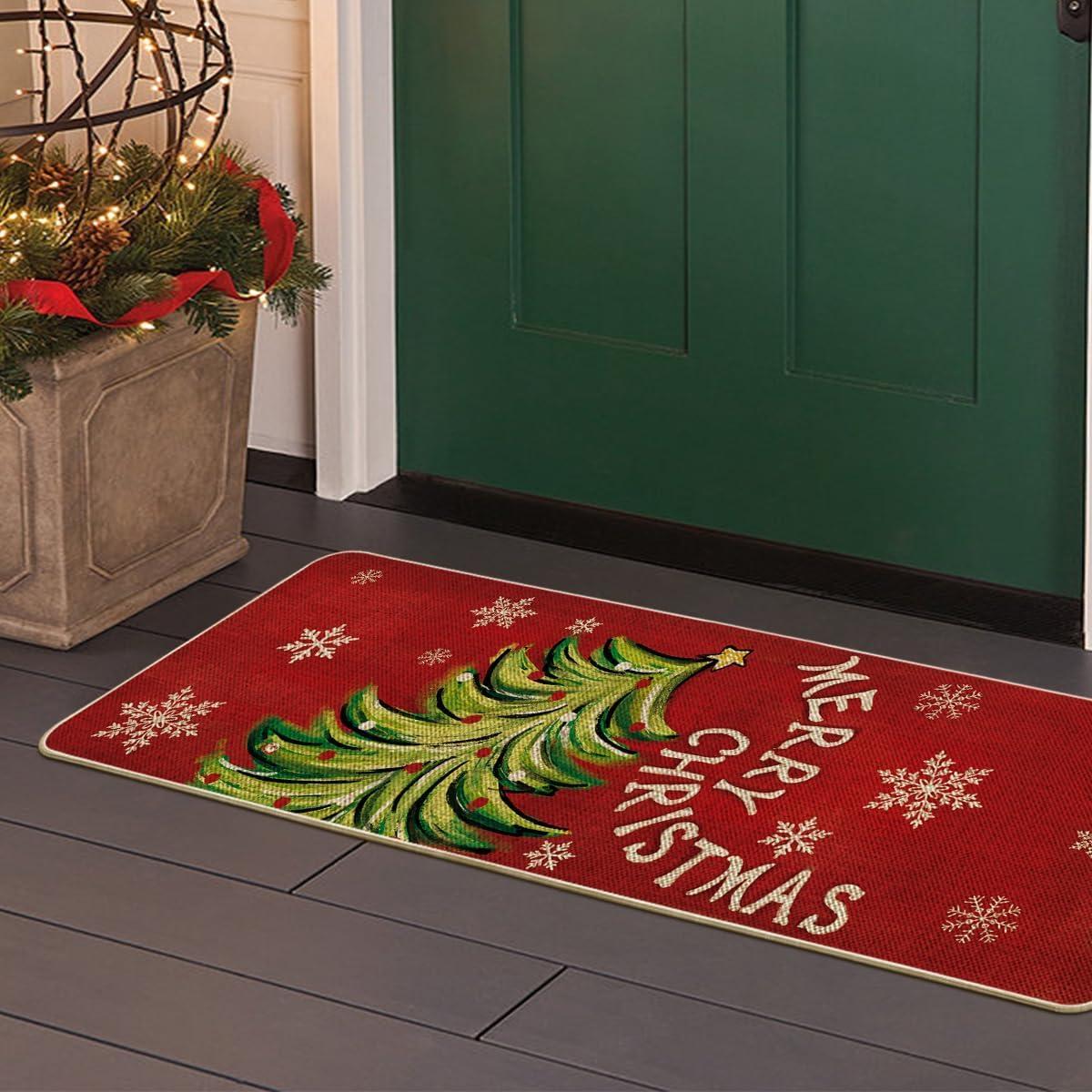 Artoid Mode Black Holly Mistletoe Merry Christmas Doormat, Xmas Winter Home Decor Switch Rug Door Mat 17×29 Inch(Red)