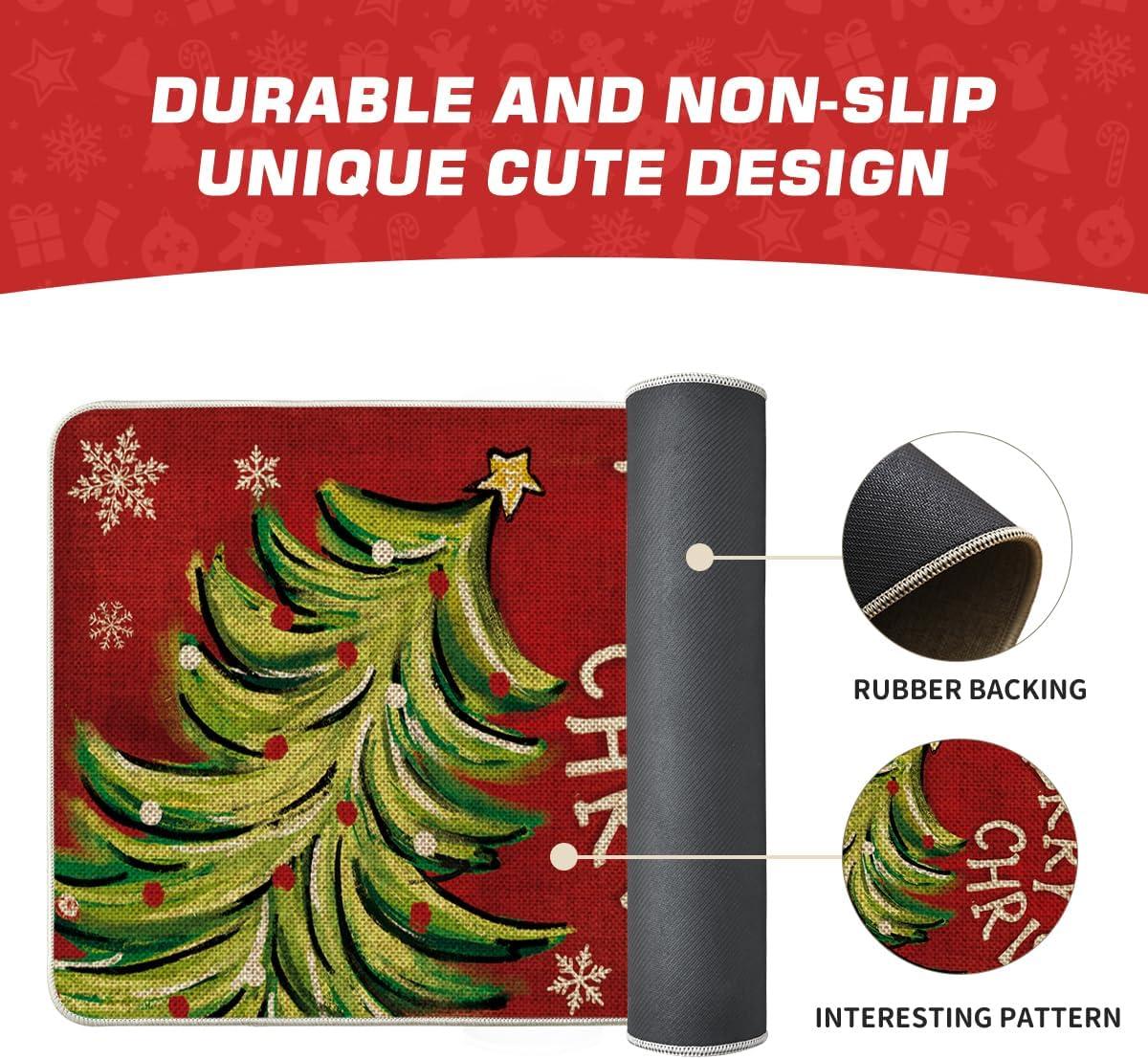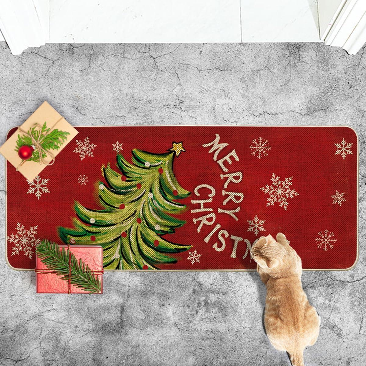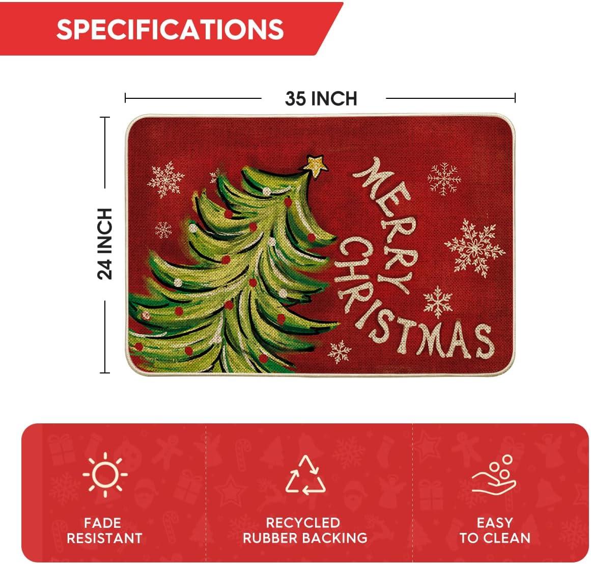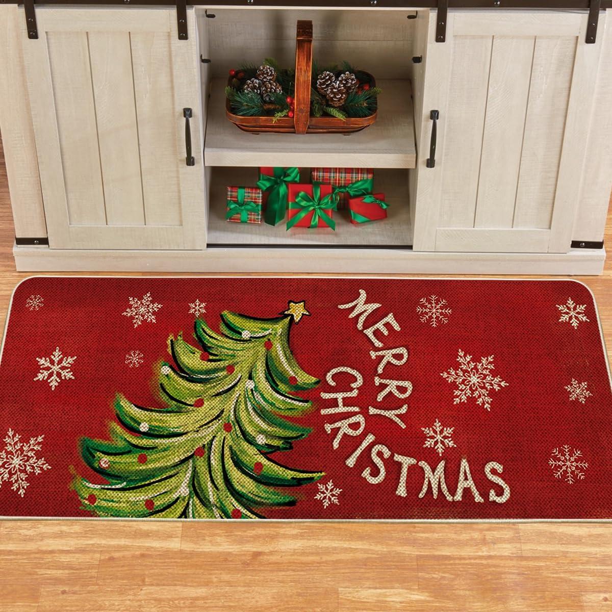 Artoid Mode Black Holly Mistletoe Merry Christmas Doormat, Xmas Winter Home Decor Switch Rug Door Mat 17×29 Inch(Red)