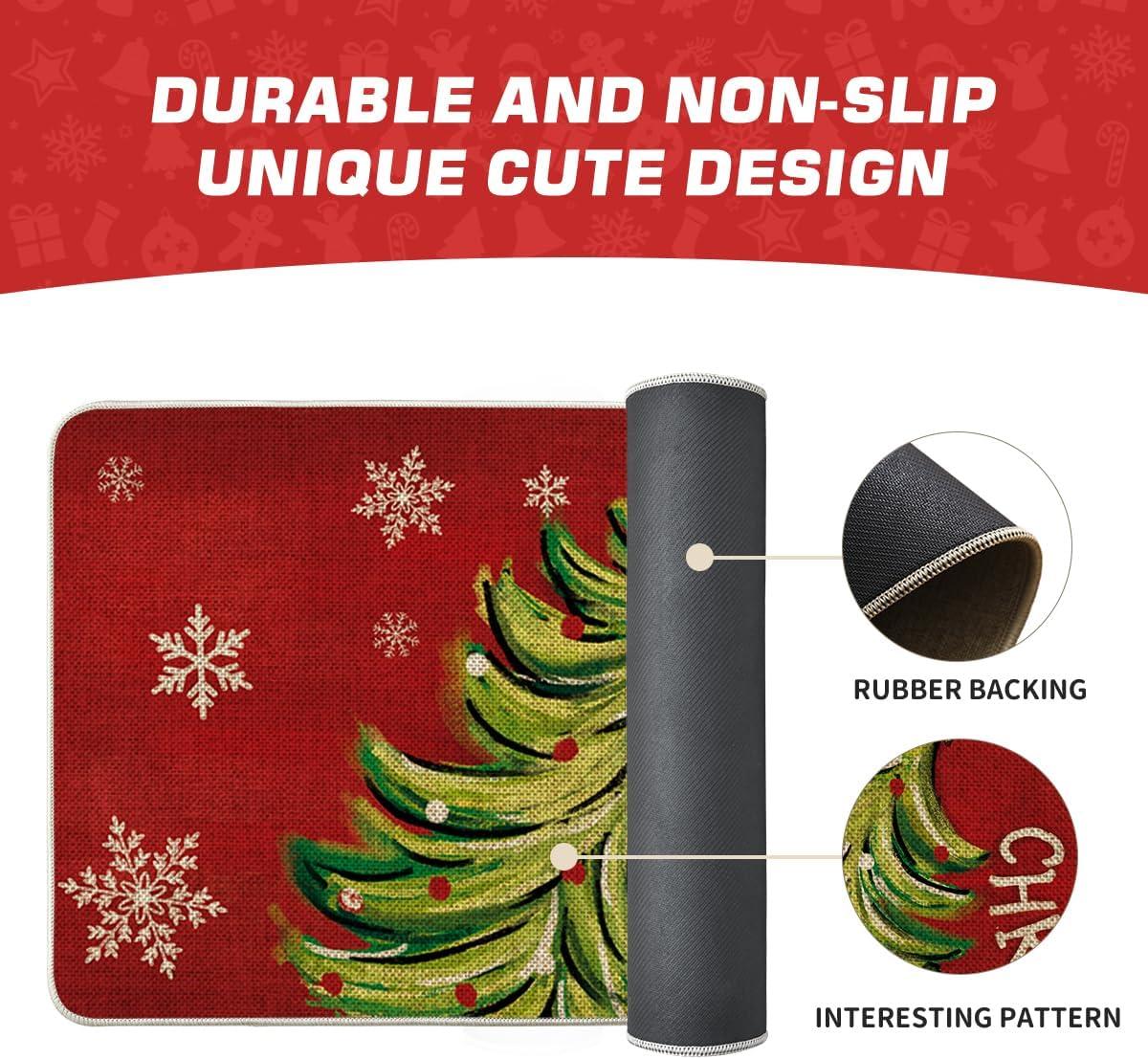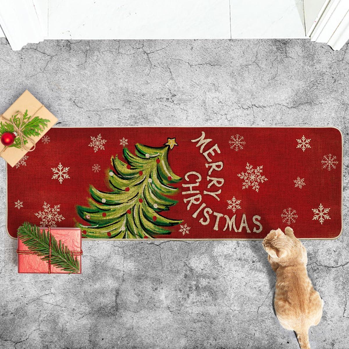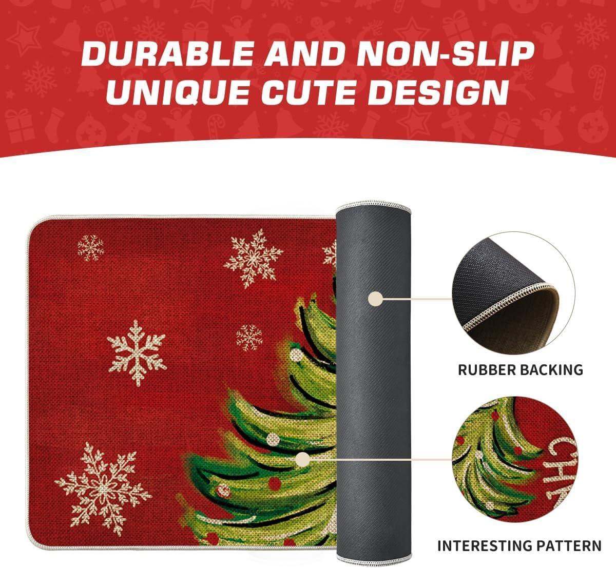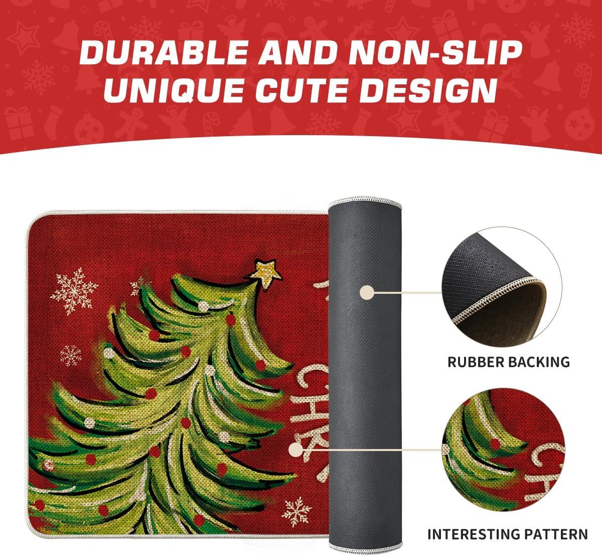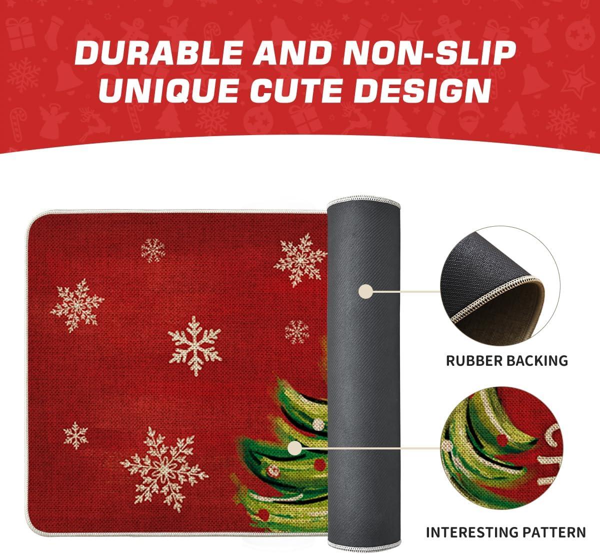 Artoid Mode Black Holly Mistletoe Merry Christmas Doormat, Xmas Winter Home Decor Switch Rug Door Mat 17×29 Inch(Red)
