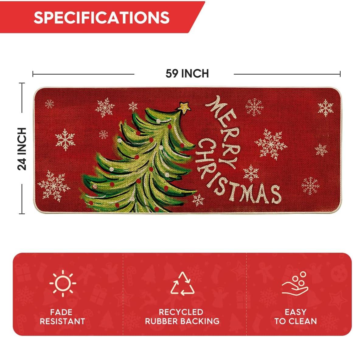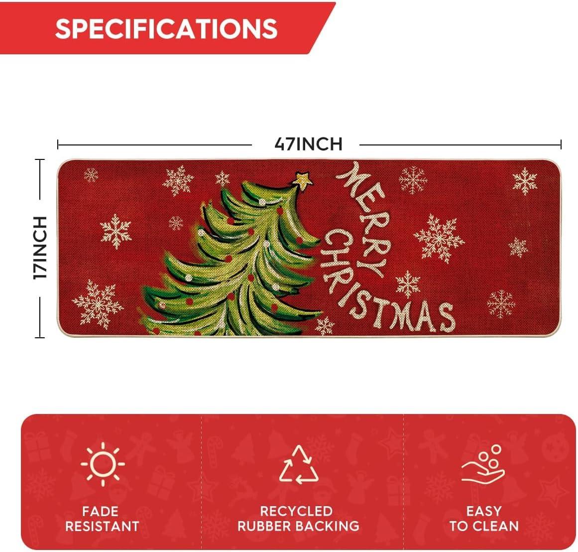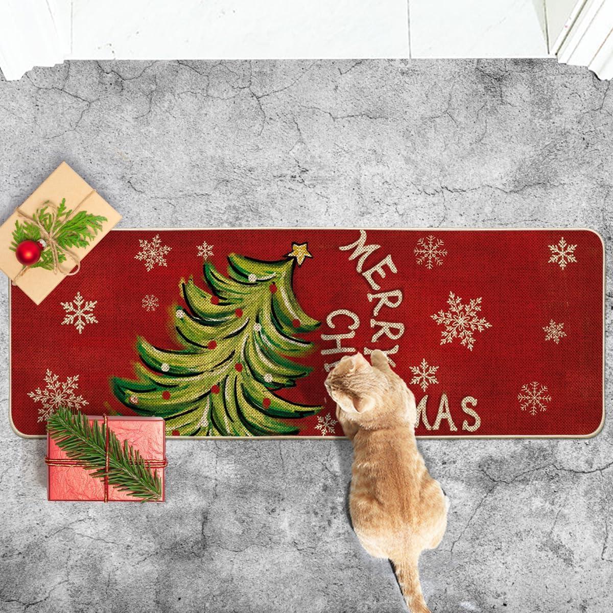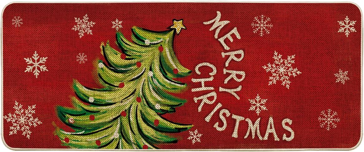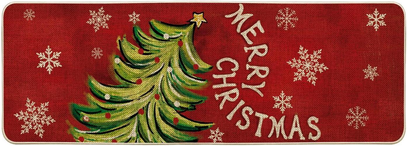 Artoid Mode Black Holly Mistletoe Merry Christmas Doormat, Xmas Winter Home Decor Switch Rug Door Mat 17×29 Inch(Red)