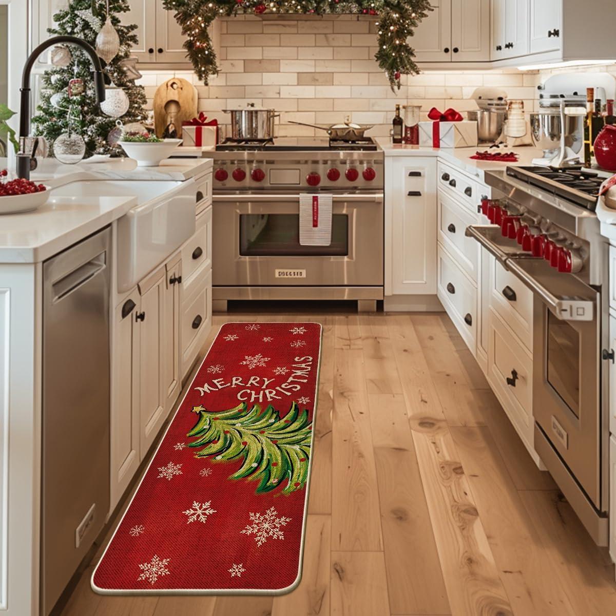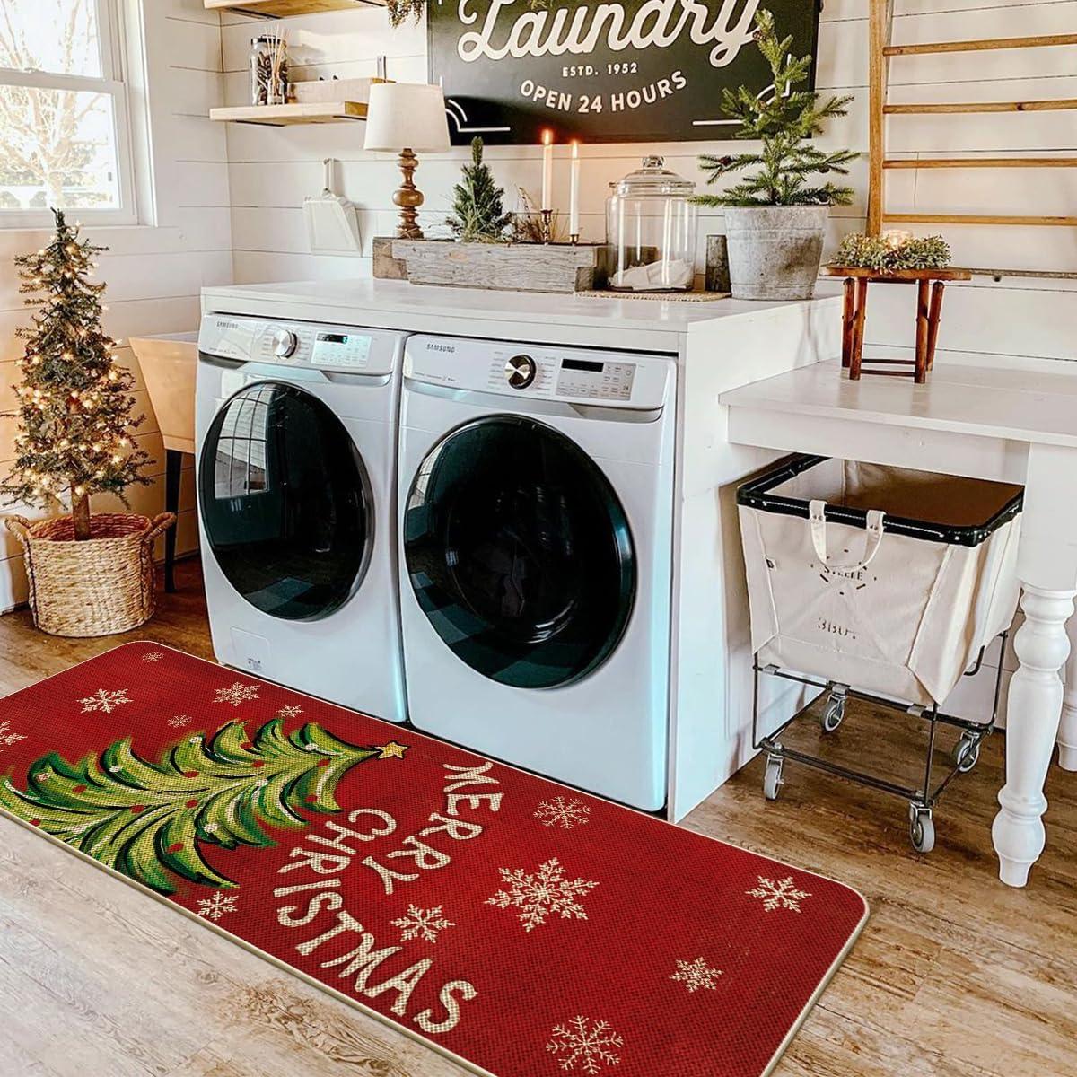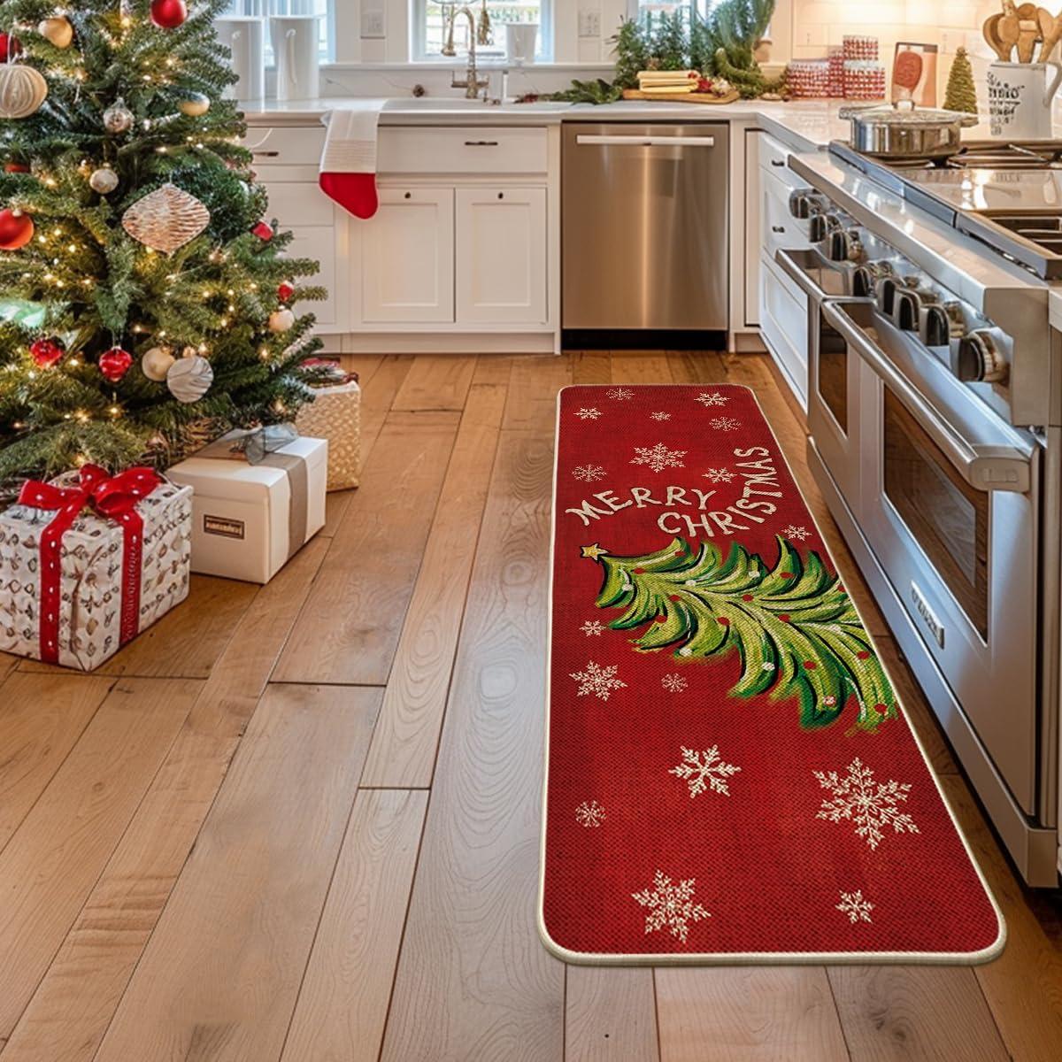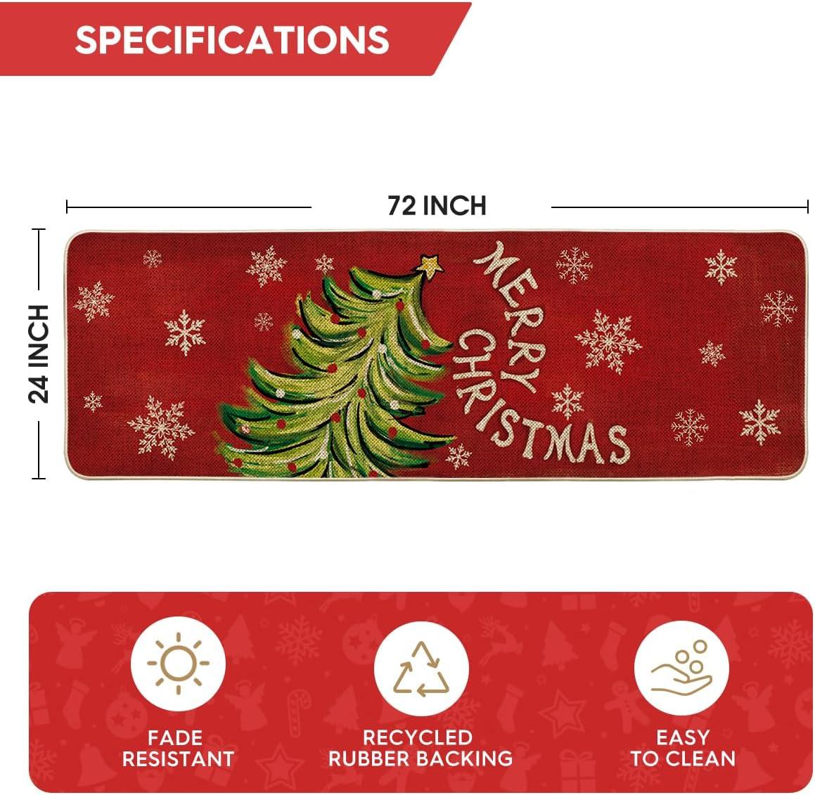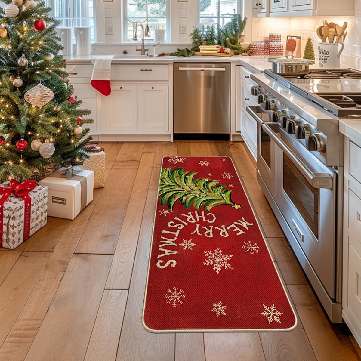 Artoid Mode Black Holly Mistletoe Merry Christmas Doormat, Xmas Winter Home Decor Switch Rug Door Mat 17×29 Inch(Red)