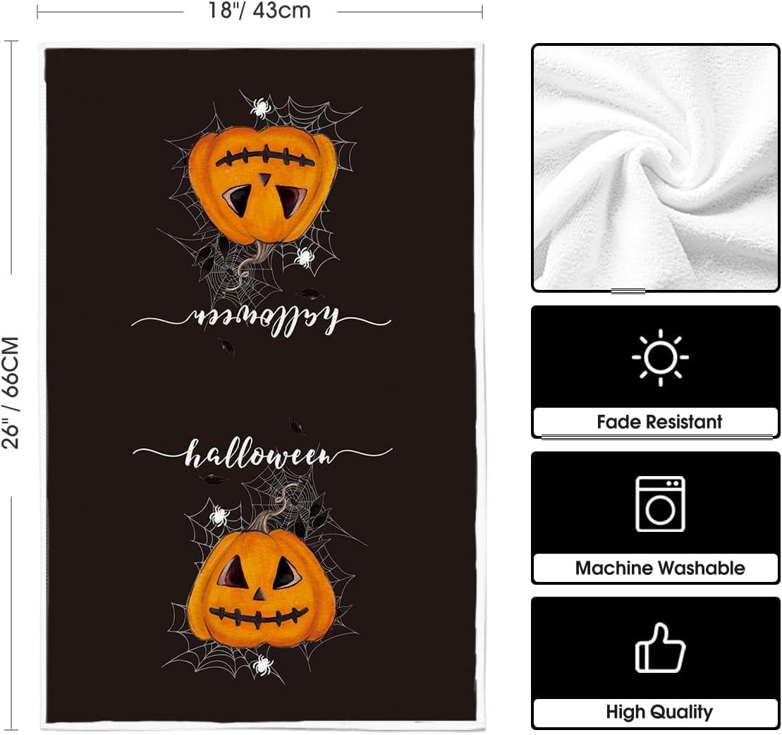 Artoid Mode Black Pumpkin Halloween Kitchen Towels Dish Towels, 18×26 Inch Spider Web Jack-O’-Lantern Decoration Hand Towels Set of 2(Black)