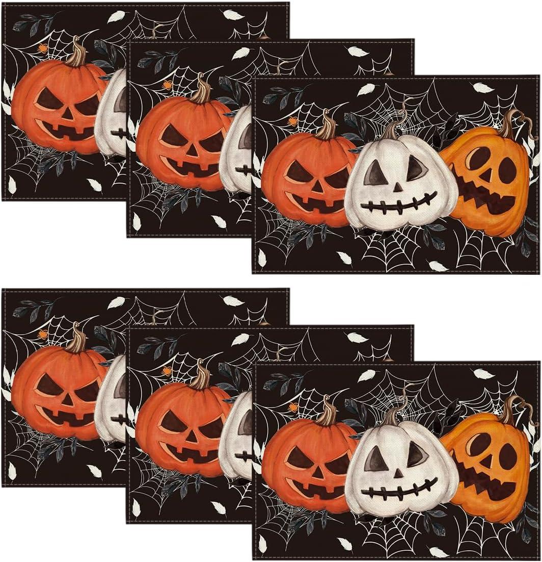 Artoid Mode Black Pumpkins Spider Web Halloween Placemats Set of 6, 12×18 Inch Seasonal Fall Holiday Table Mats for Party Kitchen Dining Decoration(Black)