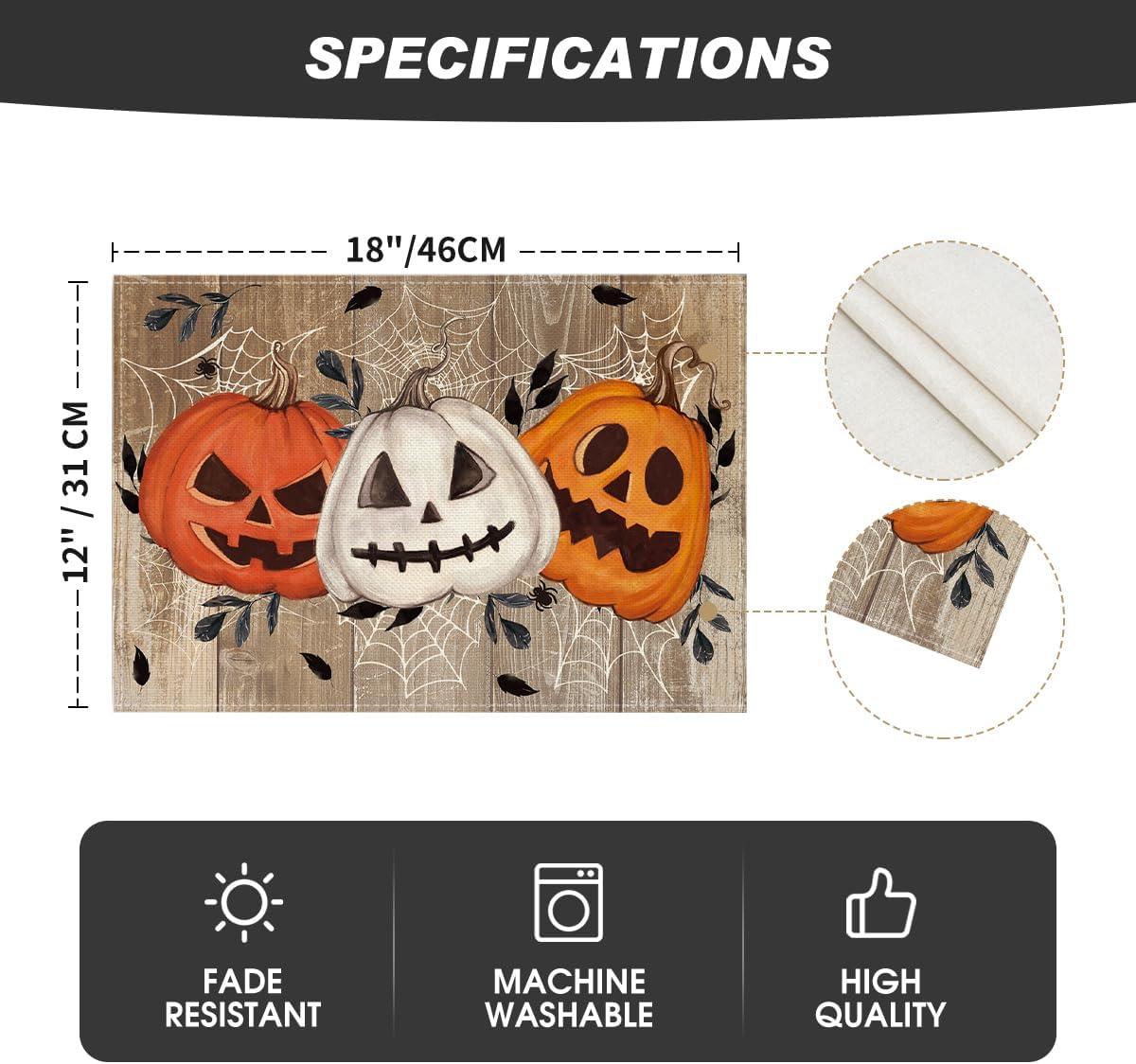 Be the first to review “Artoid Mode Black Pumpkins Spider Web Halloween Placemats Set of 6, 12×18 Inch Seasonal Fall Holiday Table Mats for Party Kitchen Dining Decoration(Wood)”