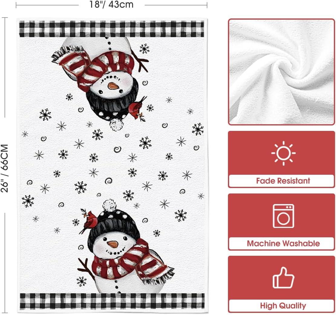 Artoid Mode Black Red Xmas Tree Snowman Christmas Kitchen Towels Dish Towels, 18×26 Inch Holiday Bird Believe Winter Decoration Hand Towels Set of 2(Black/Beige)