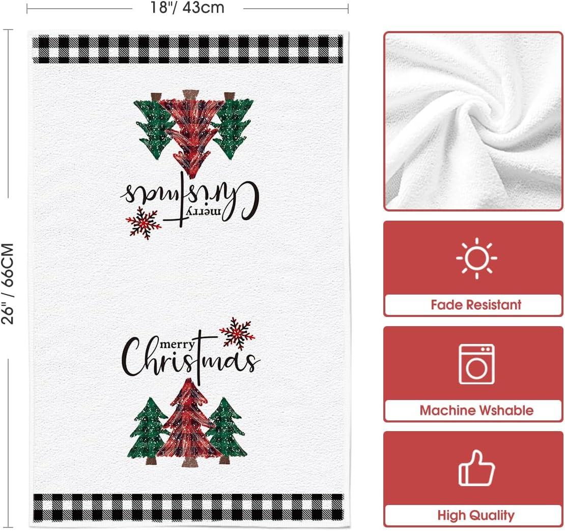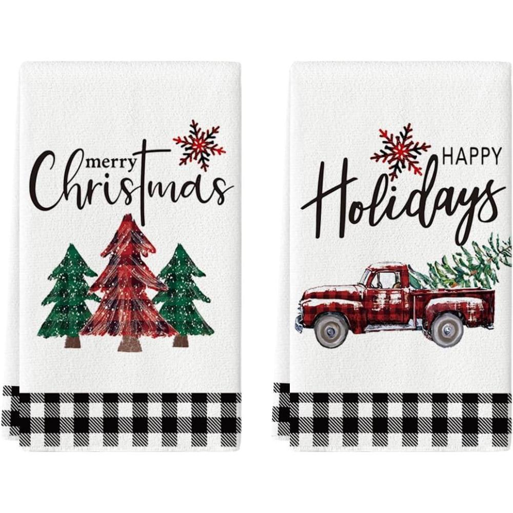 Artoid Mode Black White Truck Christmas Trees Kitchen Dish Towels, 18 x 26 Inch Winter Buffalo Plaid Holiday Ultra Absorbent Drying Cloth Tea Towels Set of 2(Black/Beige)