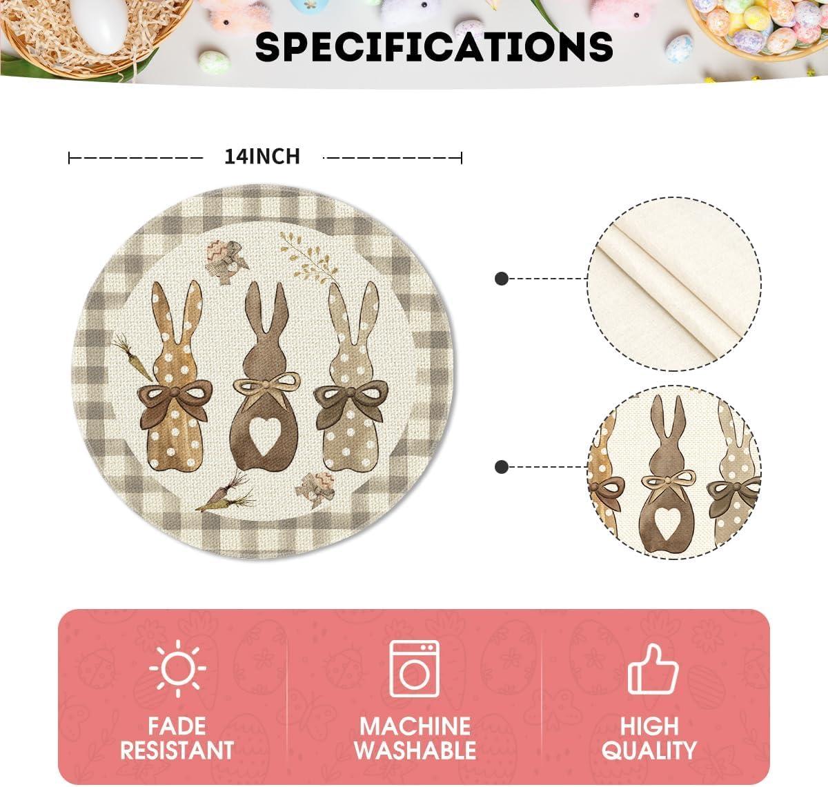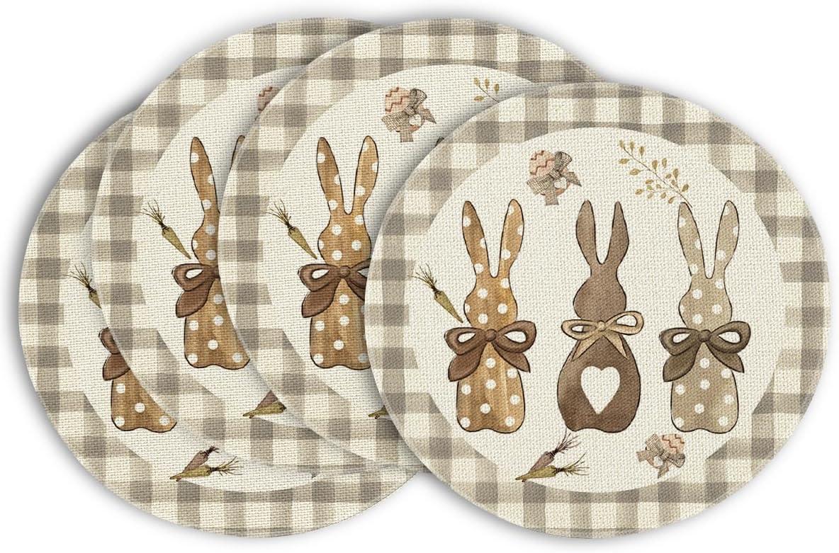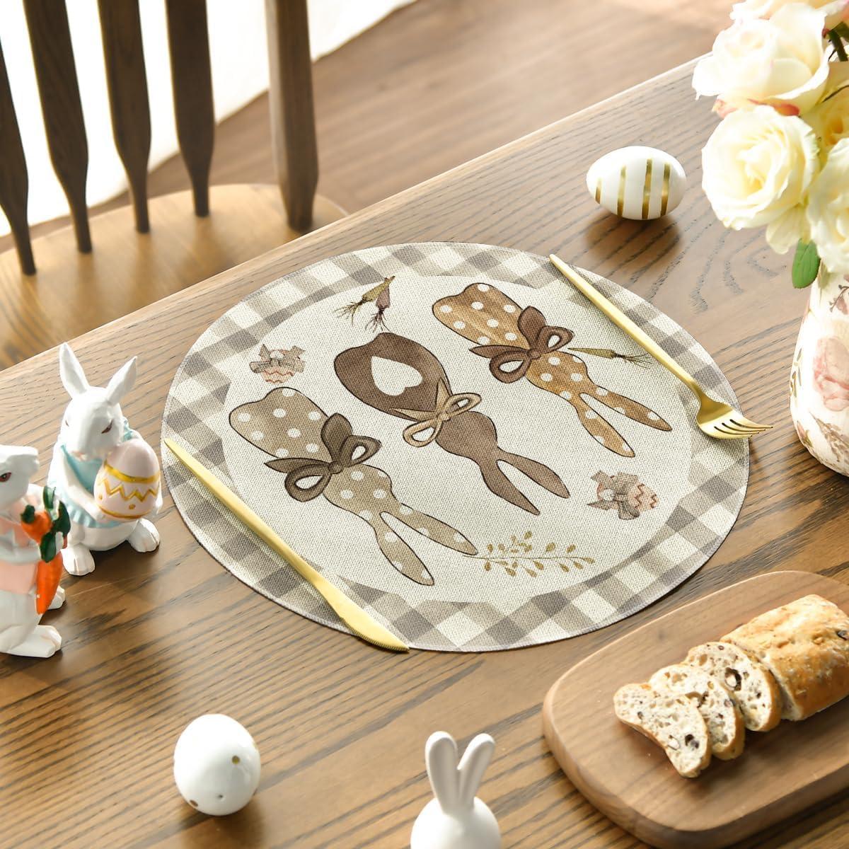 Artoid Mode Blue and White Porcelain Bunny Rabbit Easter Placemats Set of 4, 14 Inch Spring Round Table Mats for Party Kitchen Dining Decoration(Brown)