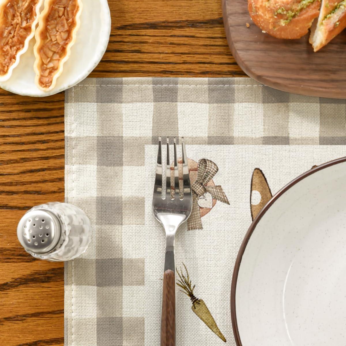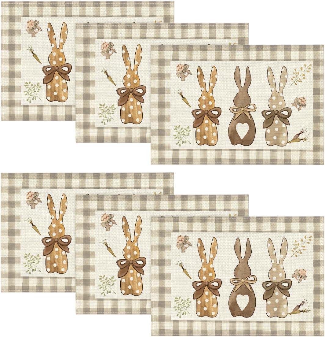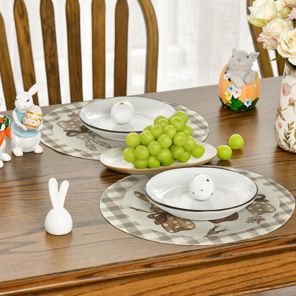 Artoid Mode Blue and White Porcelain Bunny Rabbit Easter Placemats Set of 4, 14 Inch Spring Round Table Mats for Party Kitchen Dining Decoration(Brown)