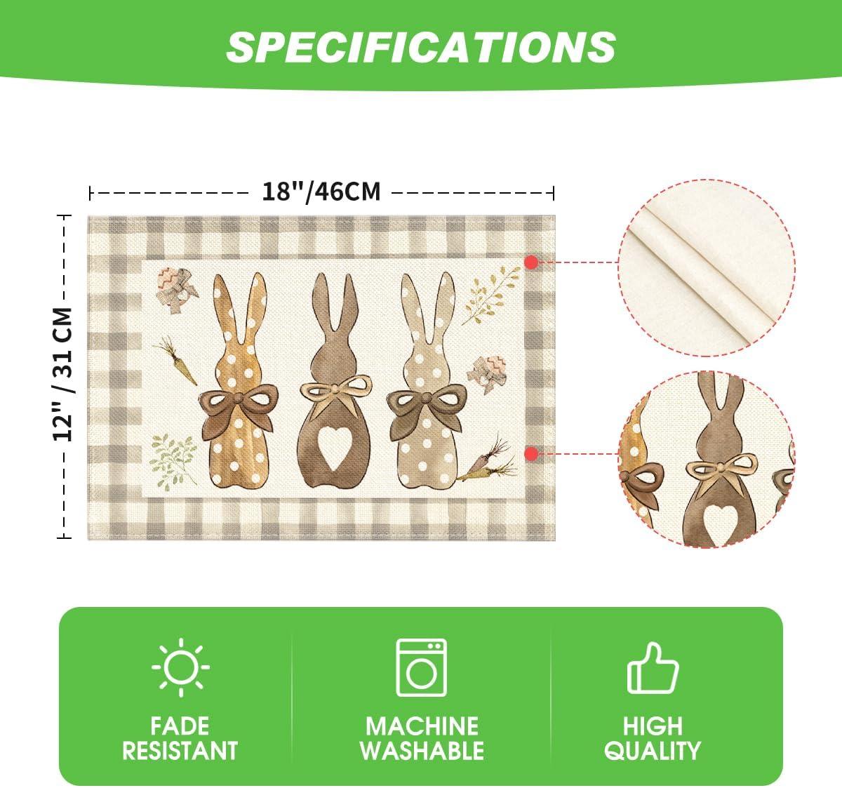 Easy to Clean: Machine wash and lay the placemat flat to dry. Stays the same and as new after every wash. Material: 100% Polyester, no shrink, no color ran. Imported, Country of origin: China