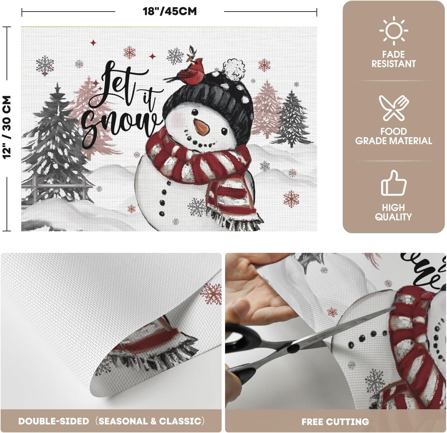 Artoid Mode Blue Christmas Vinyl Placemats Set of 4, Let it Snow Washable Heat Resistant Winter PVC Woven Plastic Table Mats for Party Dining Decor, 12×18 Inch(Black)