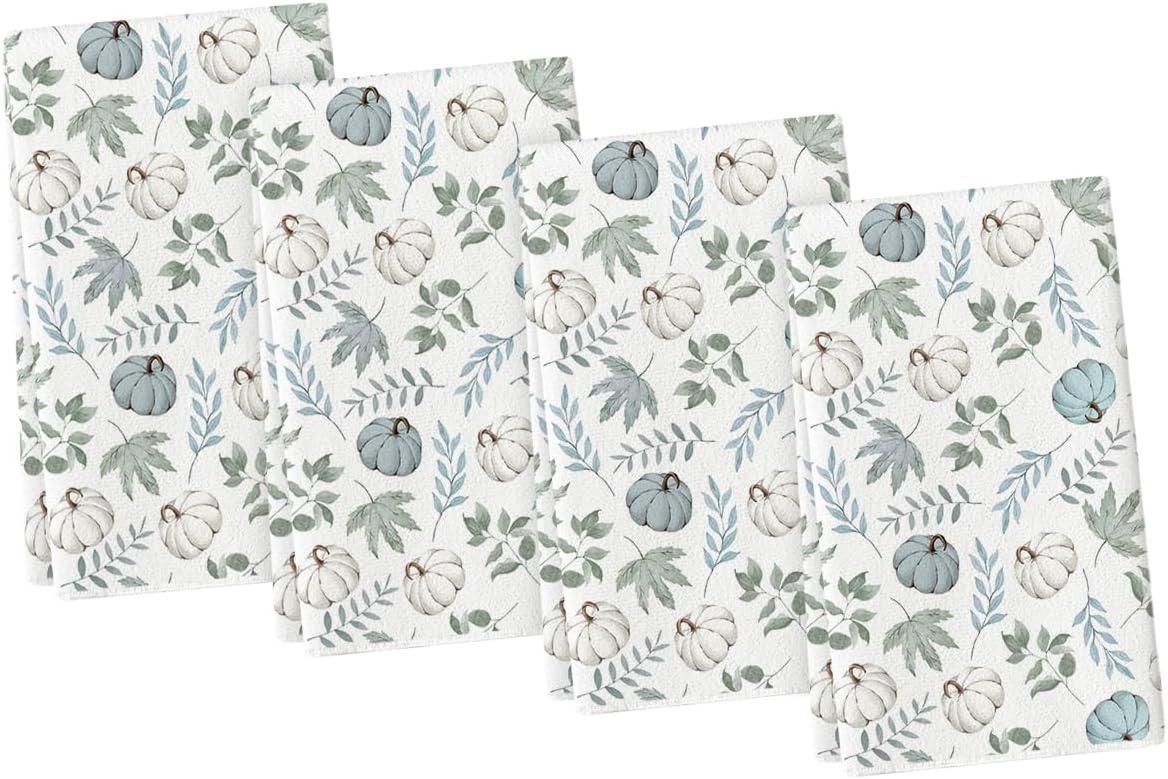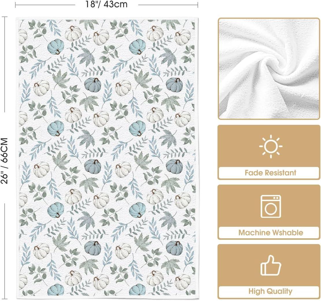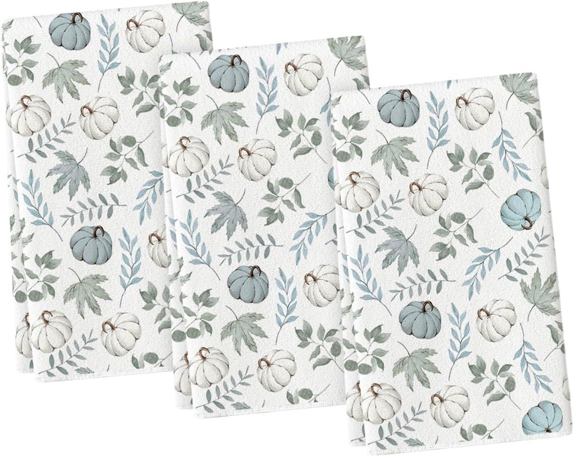 Artoid Mode Blue Eucalyptus Leaves Pumpkin Fall Kitchen Towels Dish Towels, 18×26 Inch Seasonal Decoration Hand Towels Set of 2(Blue)
