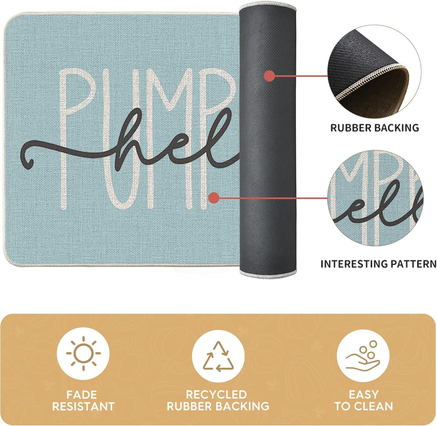 Artoid Mode Blue Hello Pumpkin Fall Kitchen Mats Set of 2, Autumn Home Decor Low-Profile Kitchen Rugs for Floor – 17×29 and 17×47 Inch(Blue)