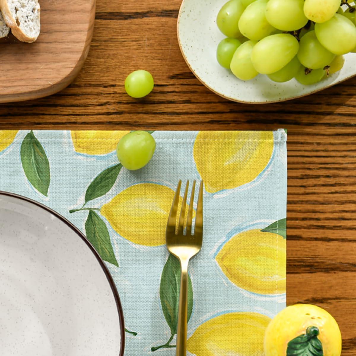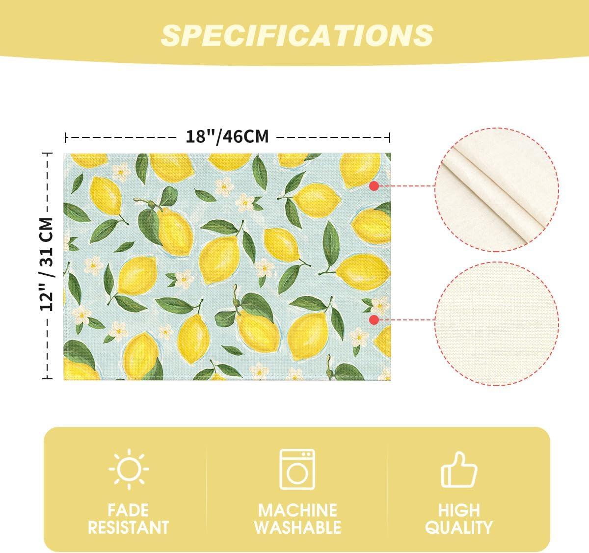 Artoid Mode Blue Lemon Flower Floral Summer Placemats Set of 4,12×18 Inch Seasonal Spring Table Mats for Party Kitchen Dining Decoration
