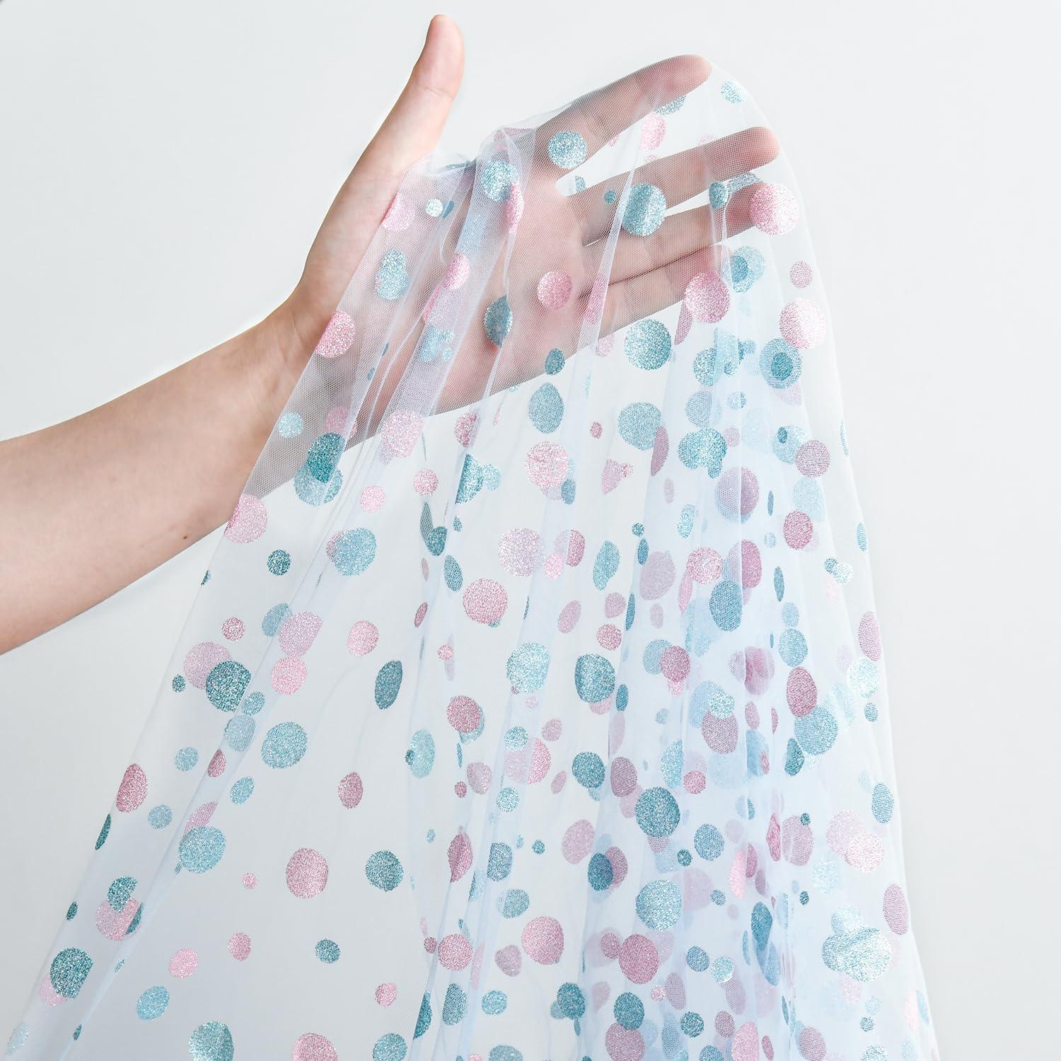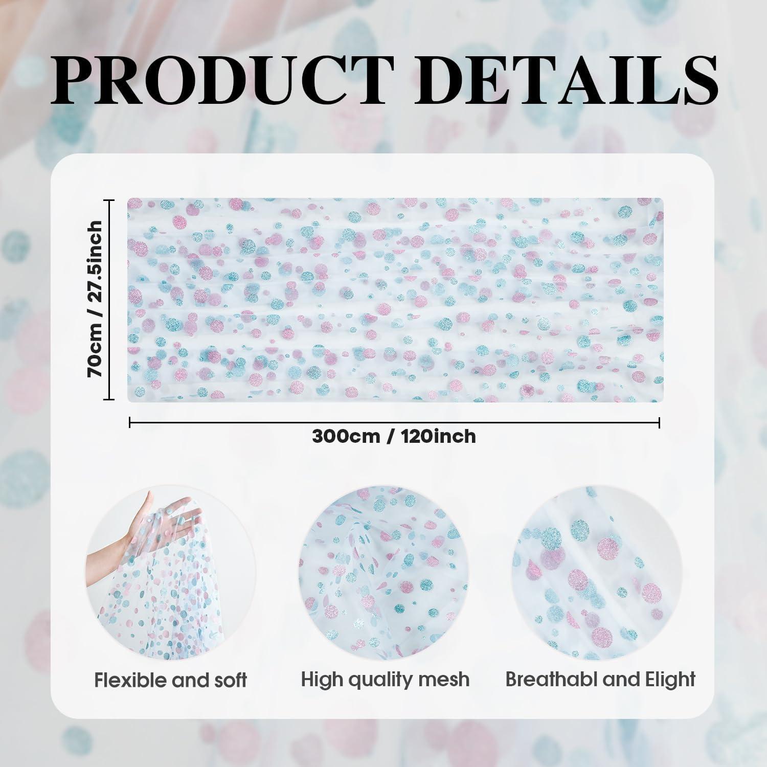 Artoid Mode Blue Polka Dots Pink Gauze Table Runner 120 Inch 10FT, Seasonal Sheer Dining Holiday Wedding Birthday Baby Shower Table Decor for Home Party(Blue)