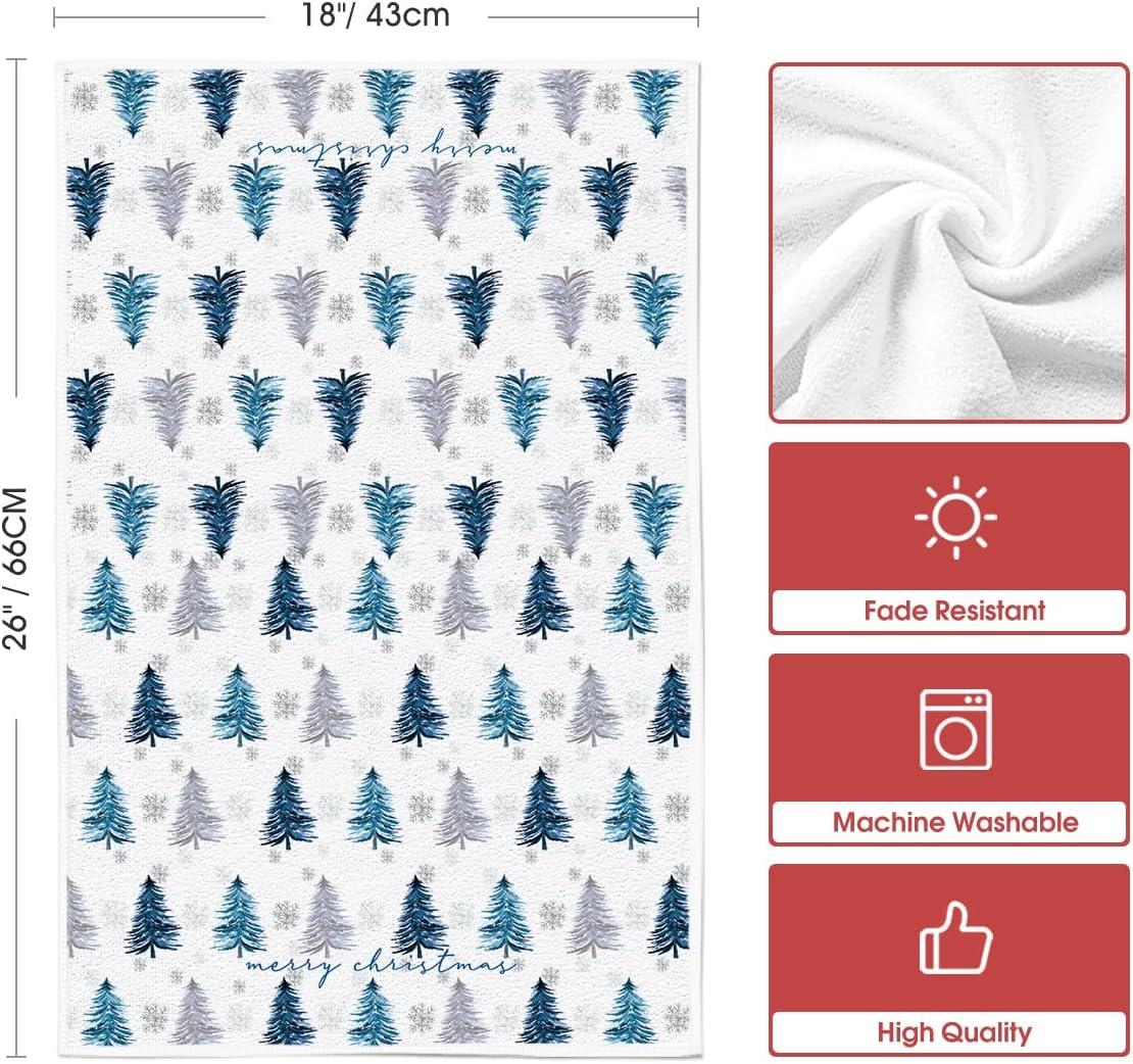 Artoid Mode Blue Xmas Tree Christmas Kitchen Towels Dish Towels, 18×26 Inch Farmhouse Holiday Snowflake Winter Decoration Cleaning Set of 2(Blue)
