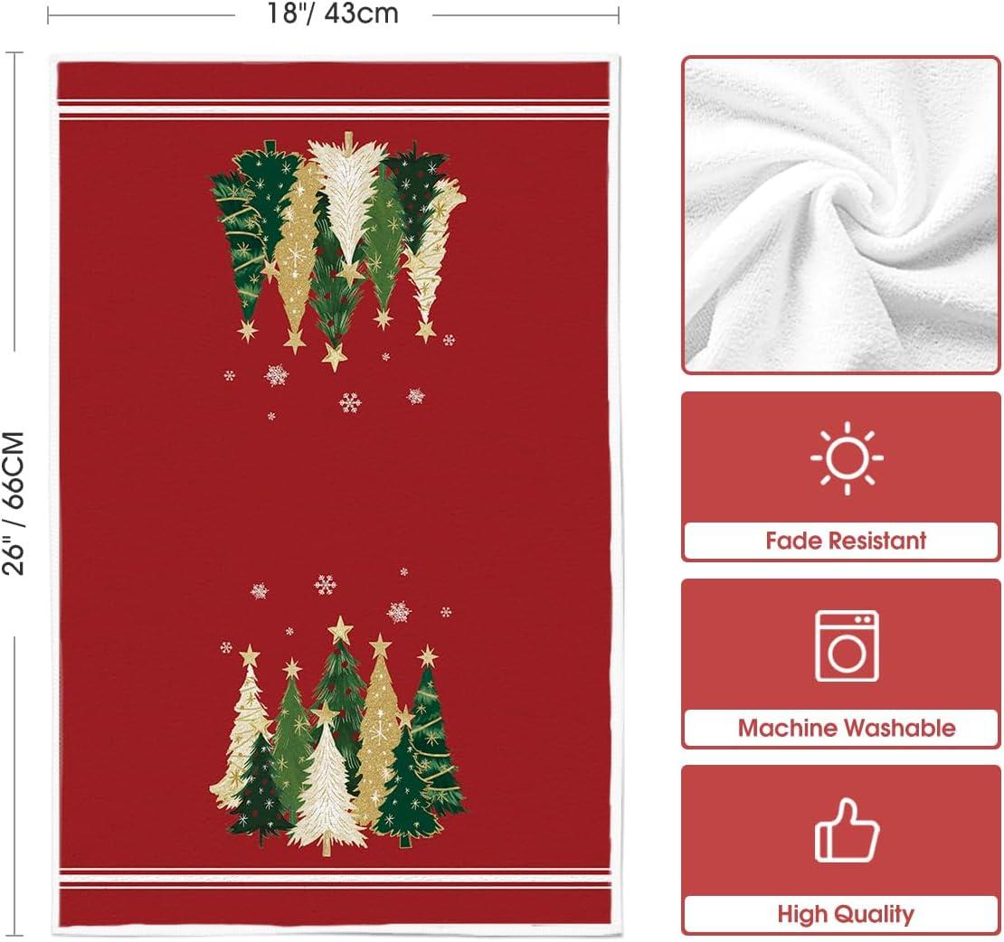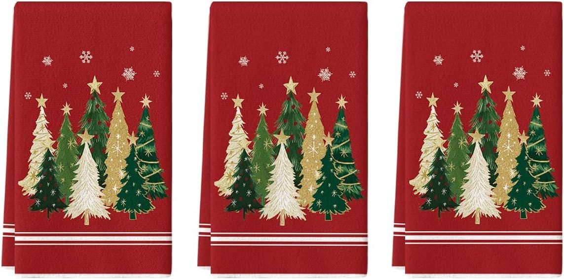 Artoid Mode Blue Xmas Tree Star Christmas Kitchen Towels Dish Towels, 18×26 Inch Farmhouse Snowflakes Decoration Cleaning Set of 2(Red)