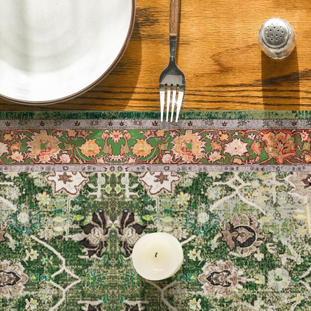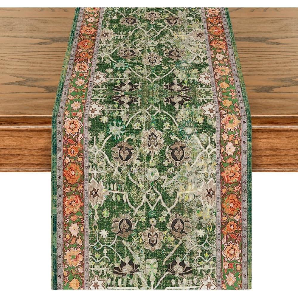 Artoid Mode Boho Bohemia Style Red Table Runner, Country Rustic Farmhouse Magical Fall Kitchen Dining Table Decoration for Home Party Decor 13×72 Inch(Green)