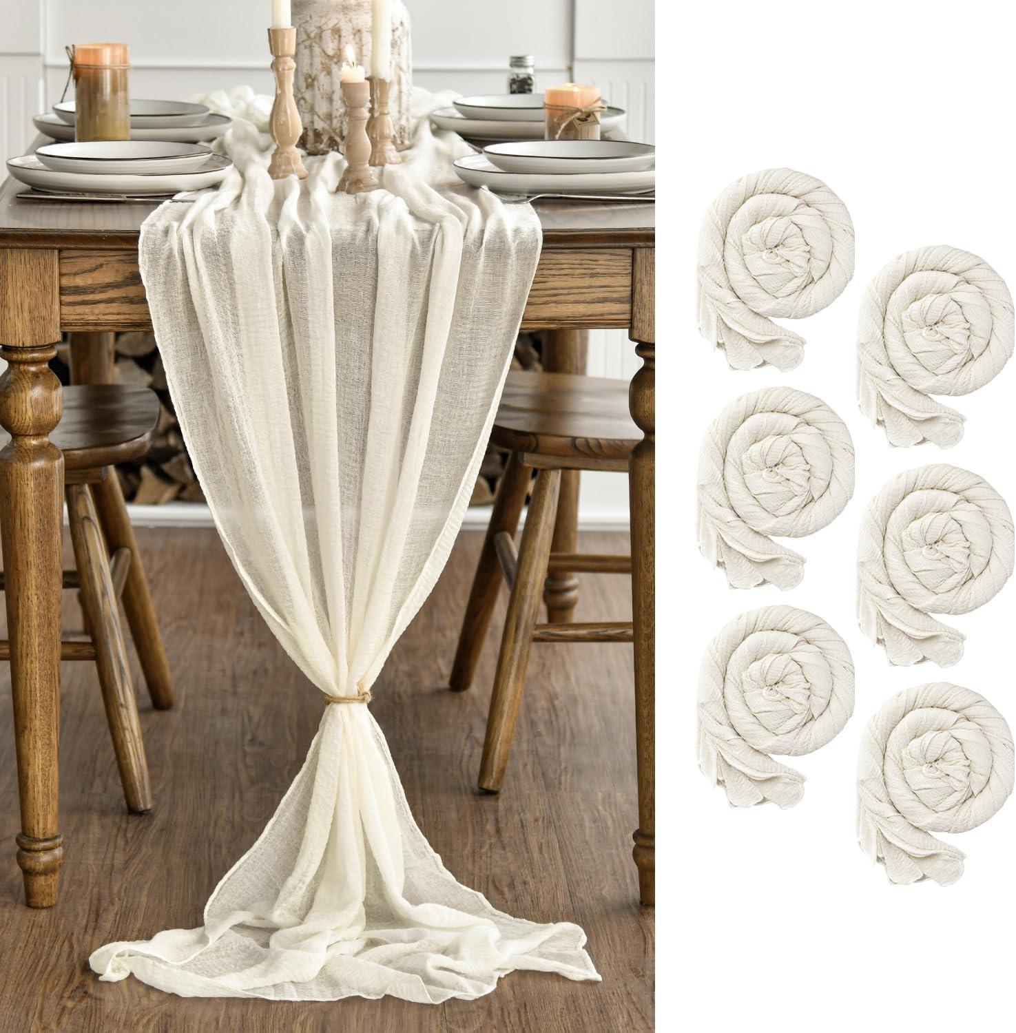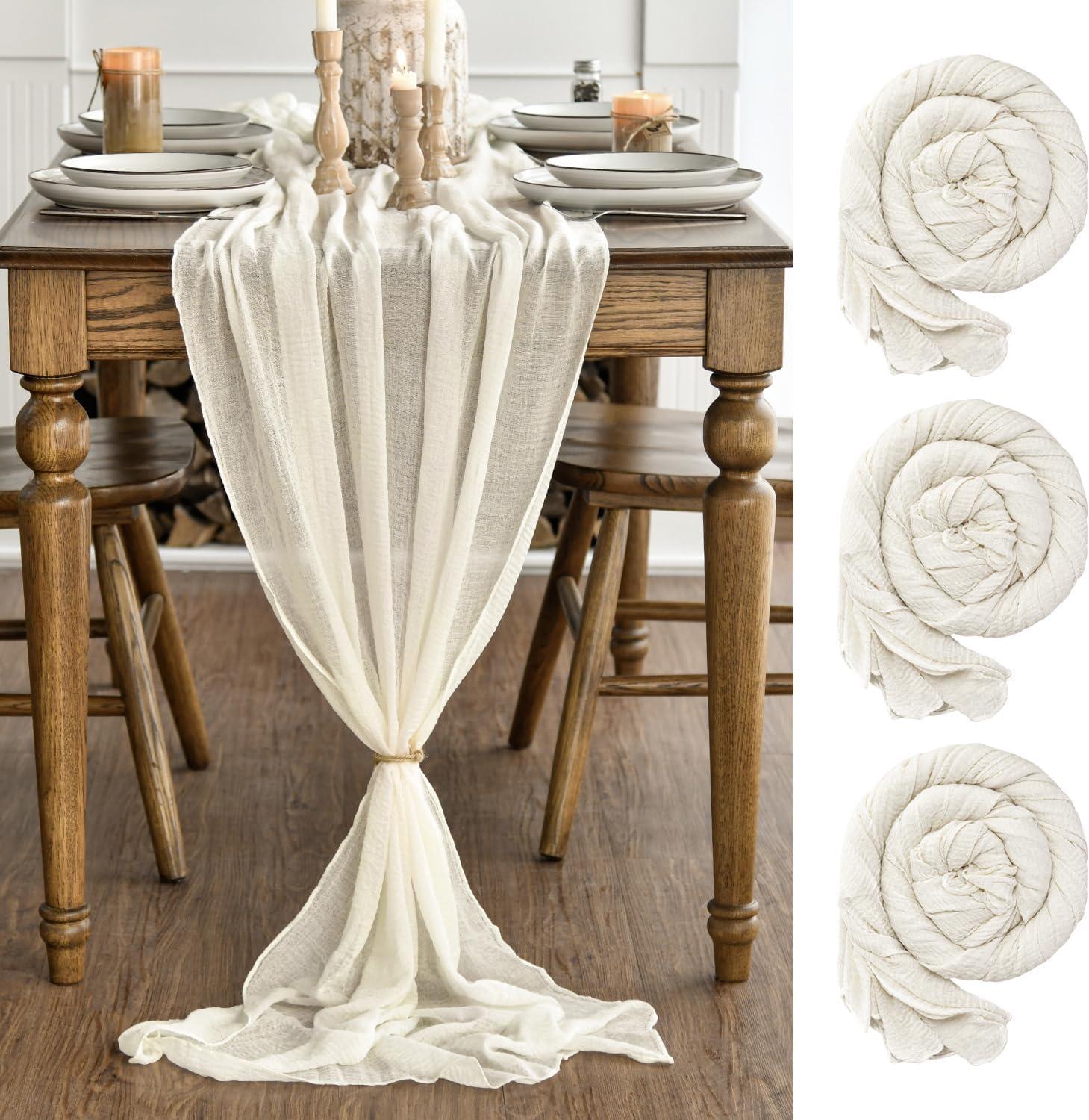 Artoid Mode Boho Cheesecloth Gauze Dusty Pink Wedding Table Runner, 120 Inch Seasonal Fabric Kitchen Dining Holiday Table Decor for Home Party Indoor(Beige)