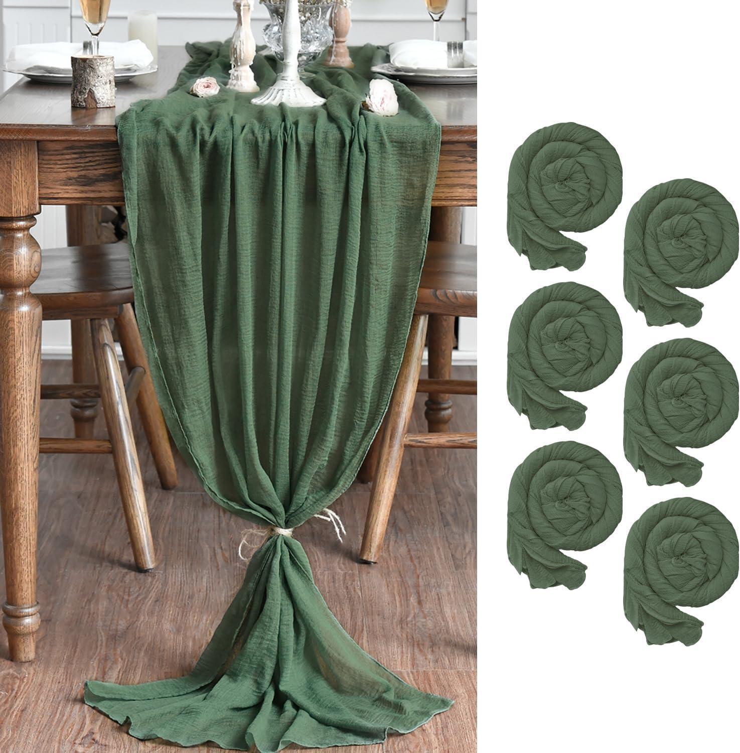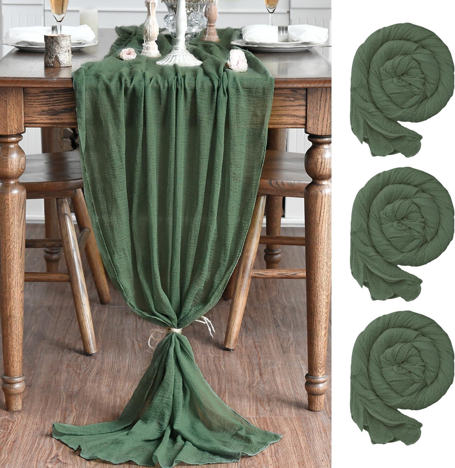 Artoid Mode Boho Cheesecloth Gauze Dusty Pink Wedding Table Runner, 120 Inch Seasonal Fabric Kitchen Dining Holiday Table Decor for Home Party Indoor(Forest Green)