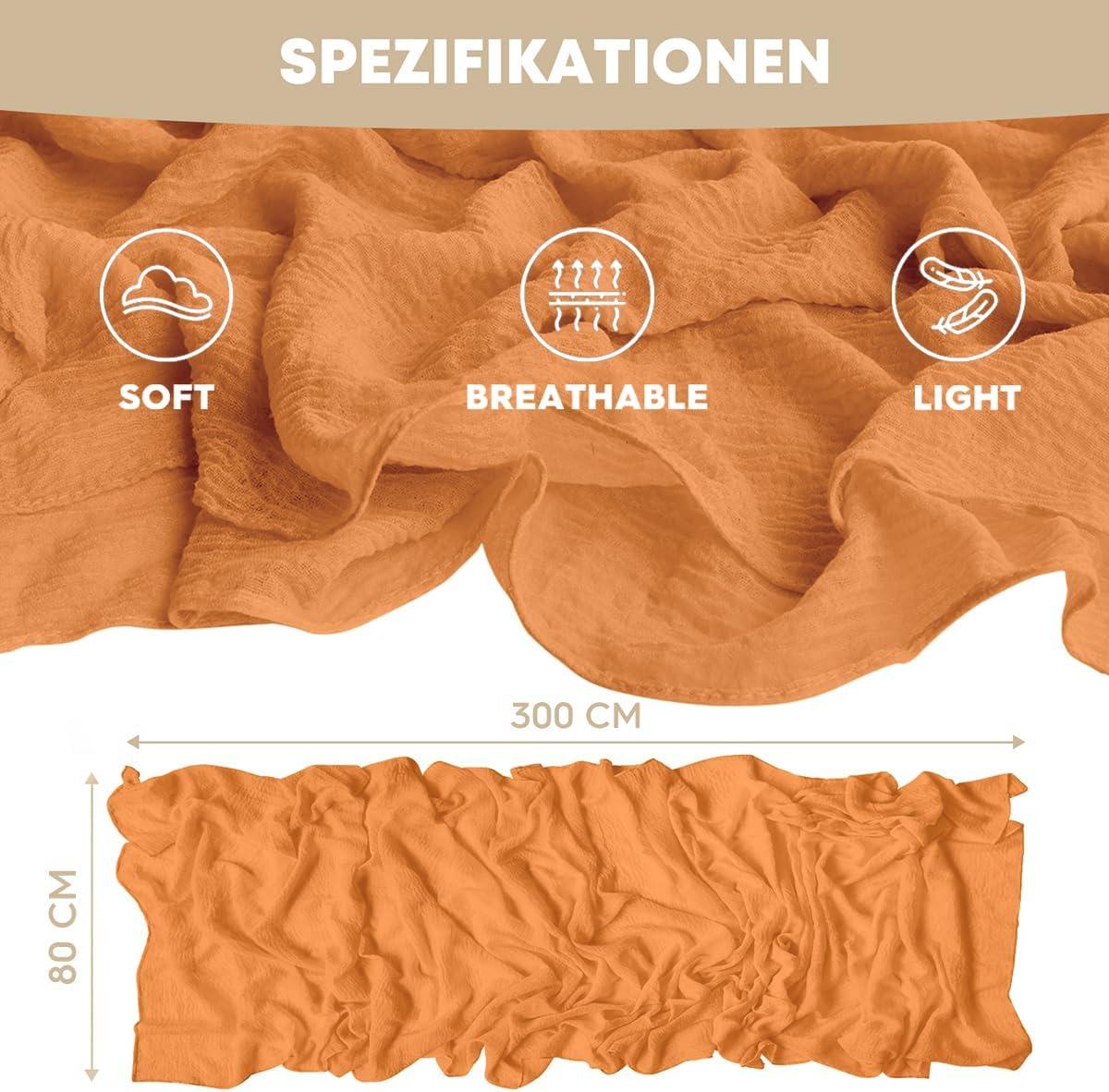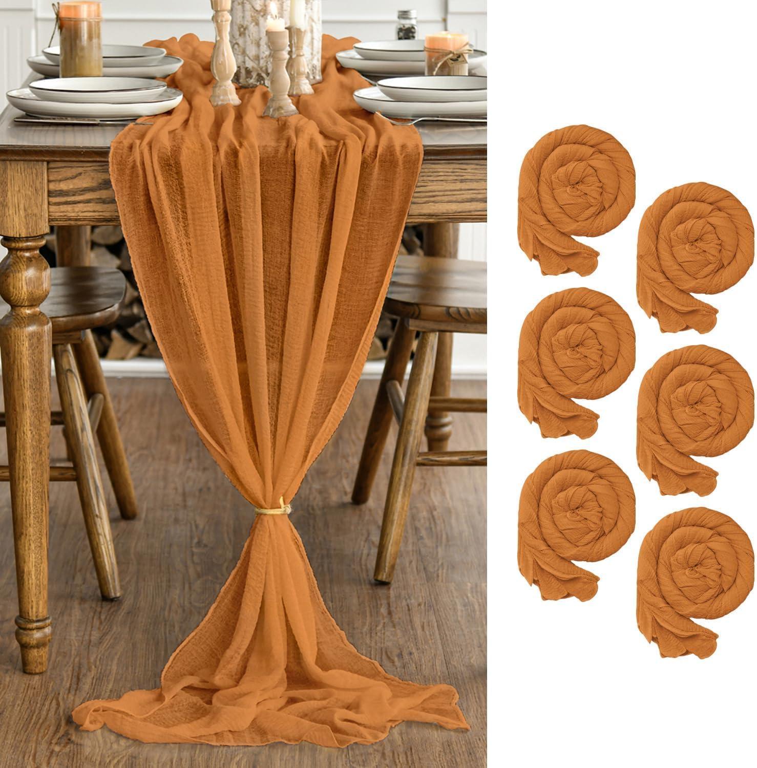 Artoid Mode Boho Cheesecloth Gauze Dusty Pink Wedding Table Runner, 120 Inch Seasonal Fabric Kitchen Dining Holiday Table Decor for Home Party Indoor(Orange)