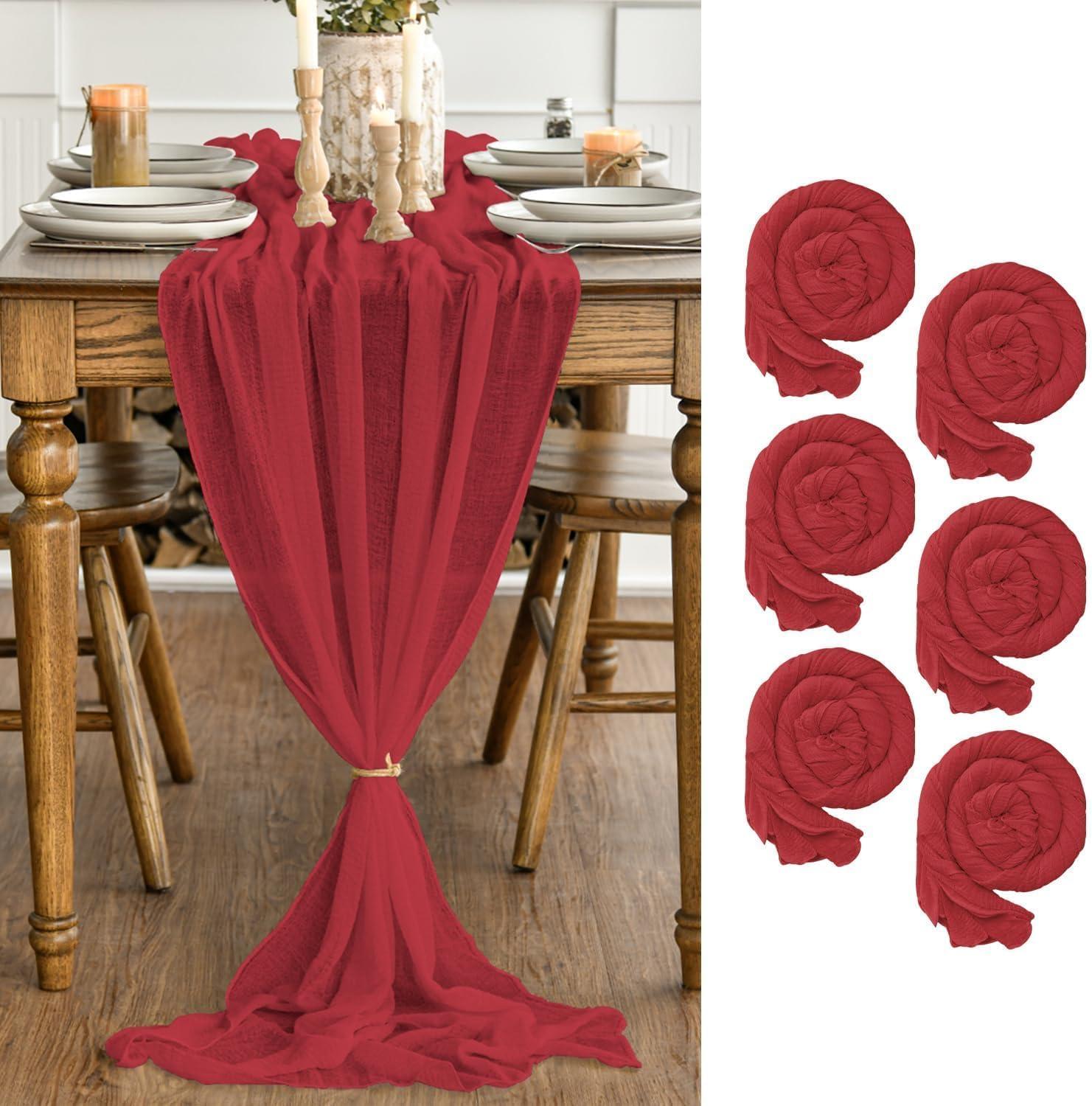 Artoid Mode Boho Cheesecloth Gauze Dusty Pink Wedding Table Runner, 120 Inch Seasonal Fabric Kitchen Dining Holiday Table Decor for Home Party Indoor(Red)