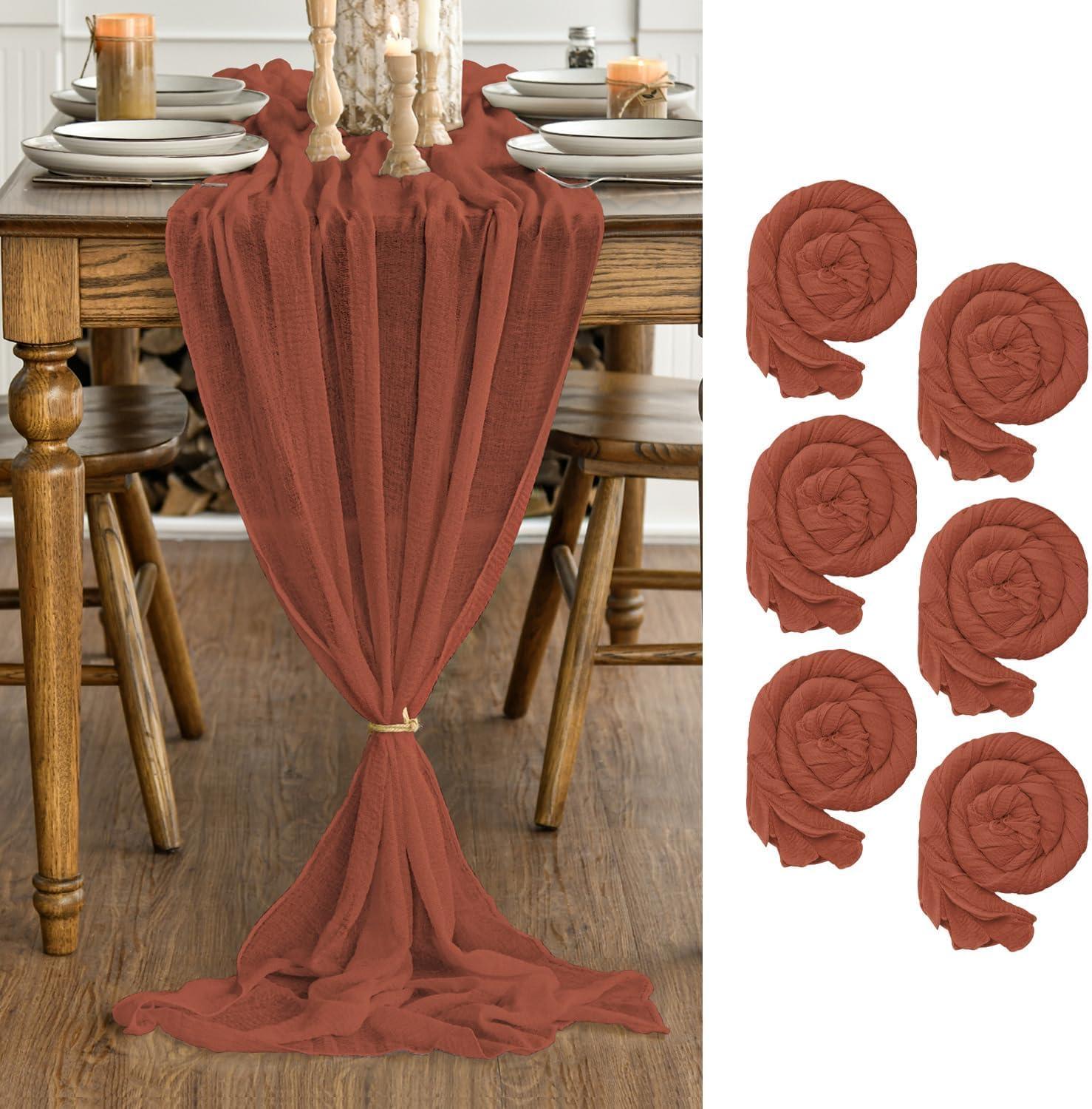 Artoid Mode Boho Cheesecloth Gauze Dusty Pink Wedding Table Runner, 120 Inch Seasonal Fabric Kitchen Dining Holiday Table Decor for Home Party Indoor(Terracotta)