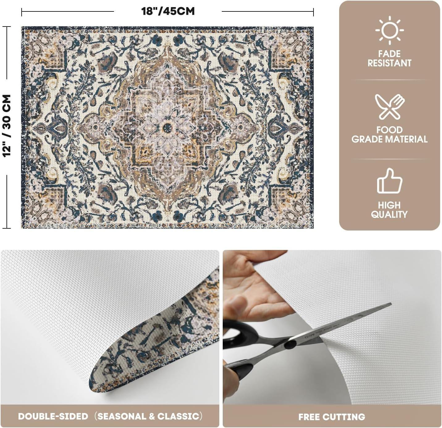 Appropriate size:The print PVC placemats size 12*18 inch which are suit for different size plates.Perfect for family daily use, holidays, receptions, parties and more