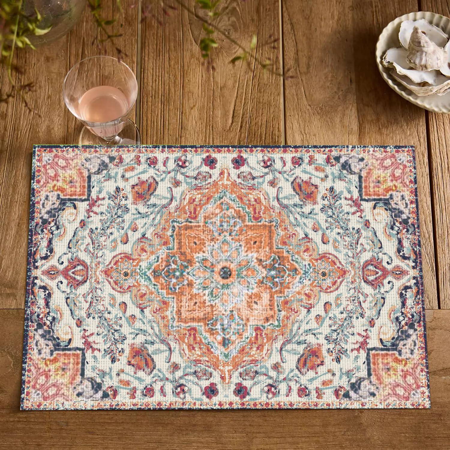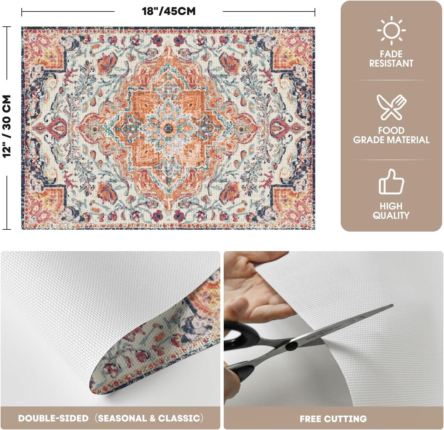 Artoid Mode Boho Vinyl Placemats Set of 4, Washable Non-Slip Woven Plastic PVC Table Mats for Party Kitchen Dining Decor, 12×18 Inch(Orange)