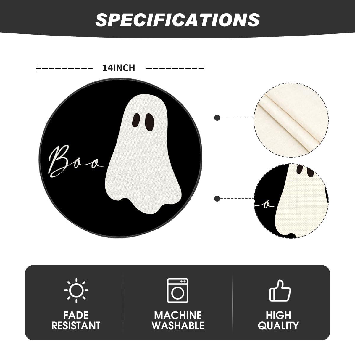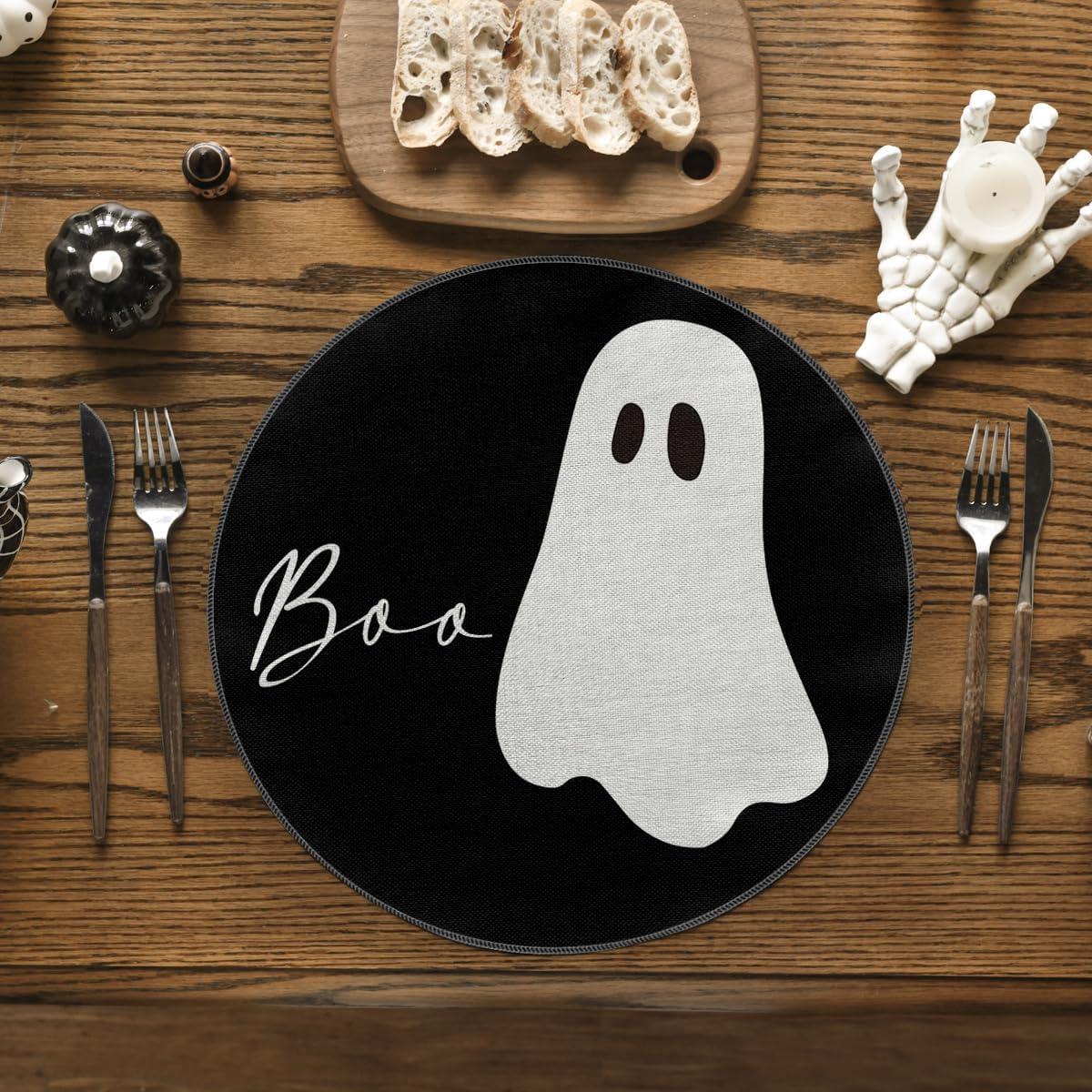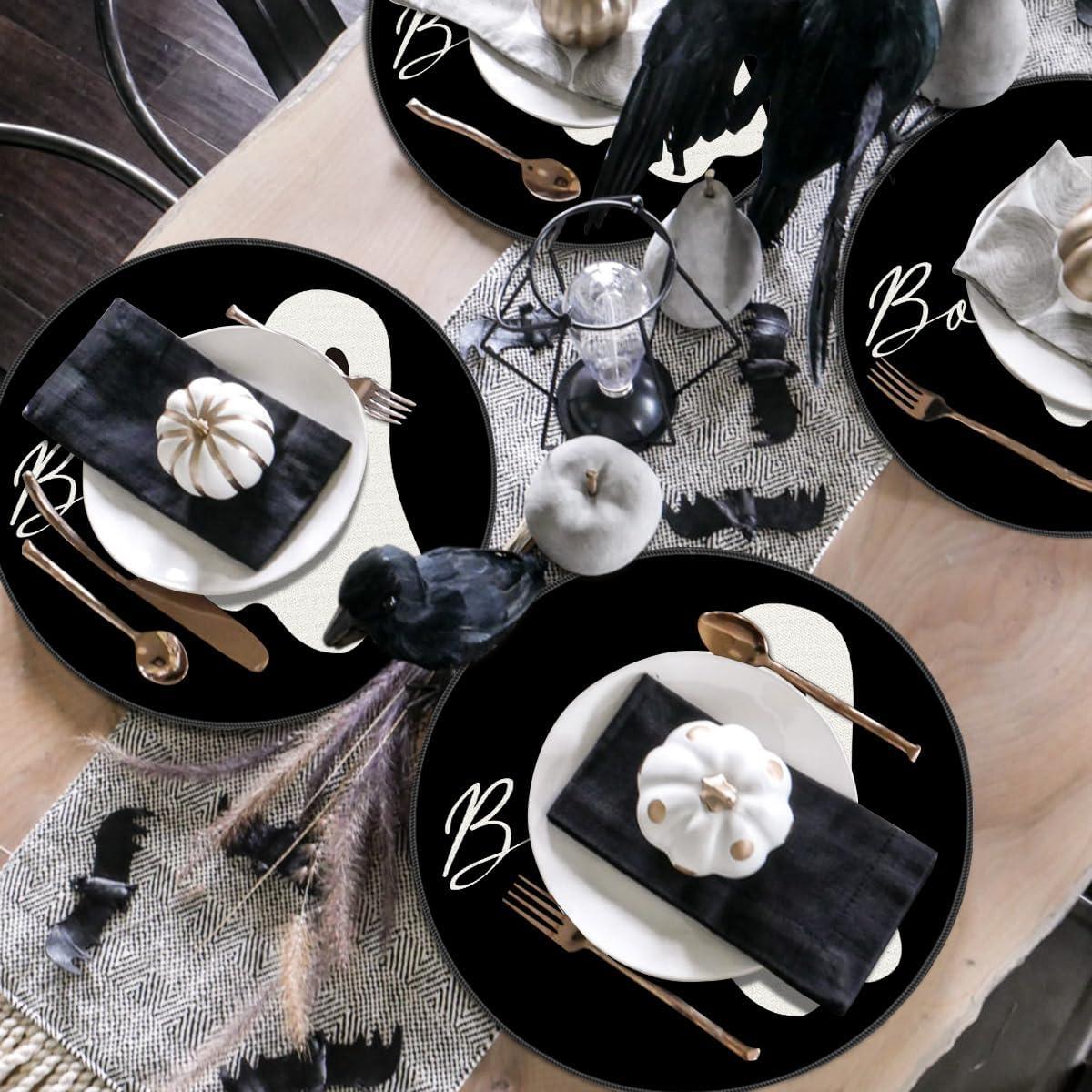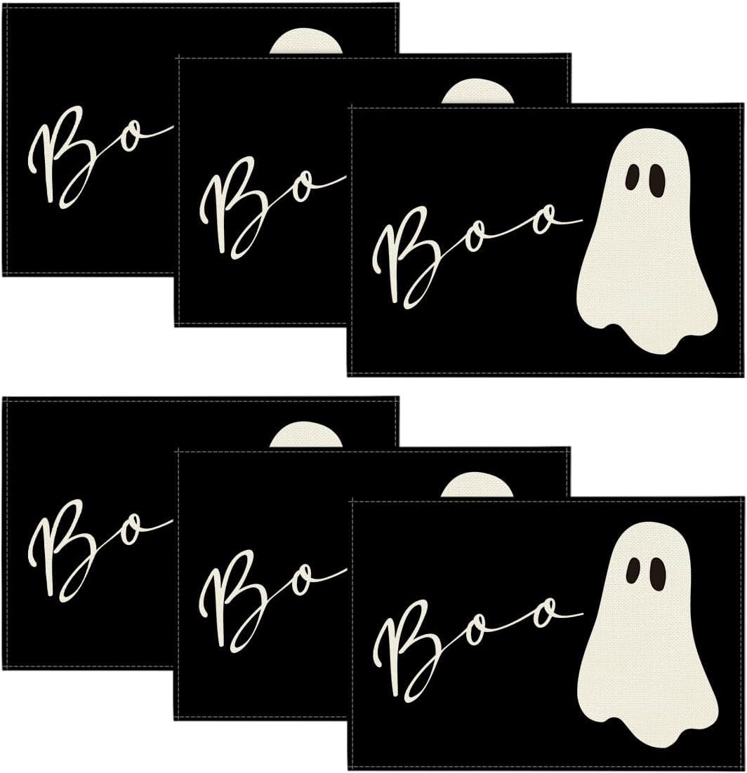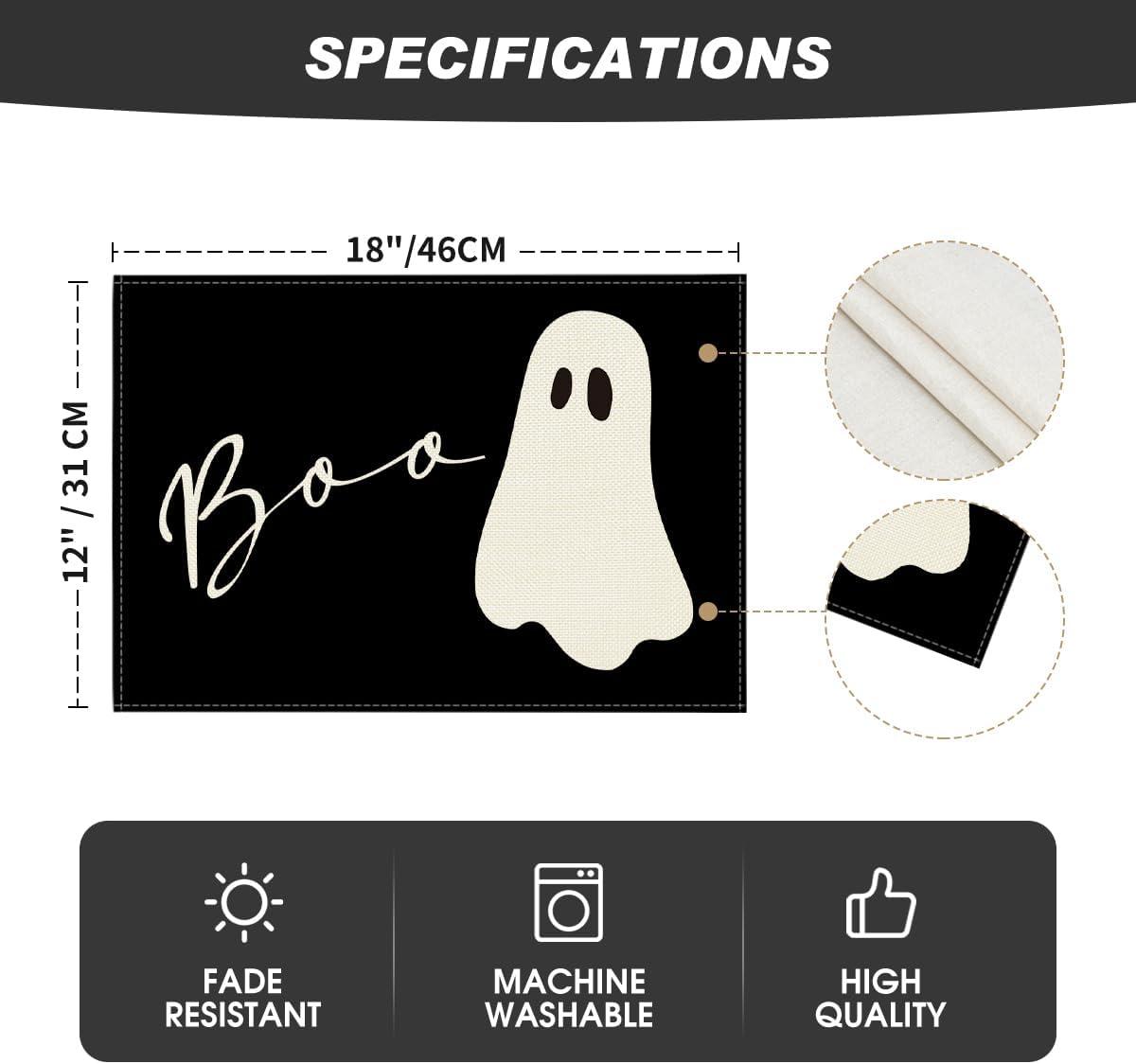 Artoid Mode Boo Ghost Halloween Placemats Set of 4, 12×18 Inch Seasonal Black Holiday Table Mats for Party Kitchen Dining Decoration(Black)
