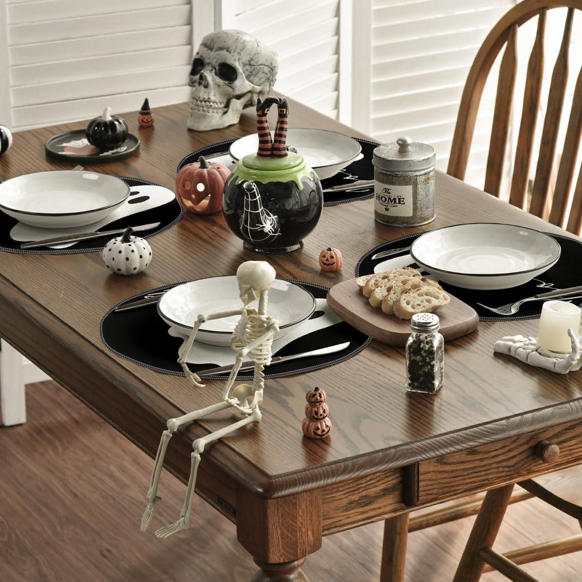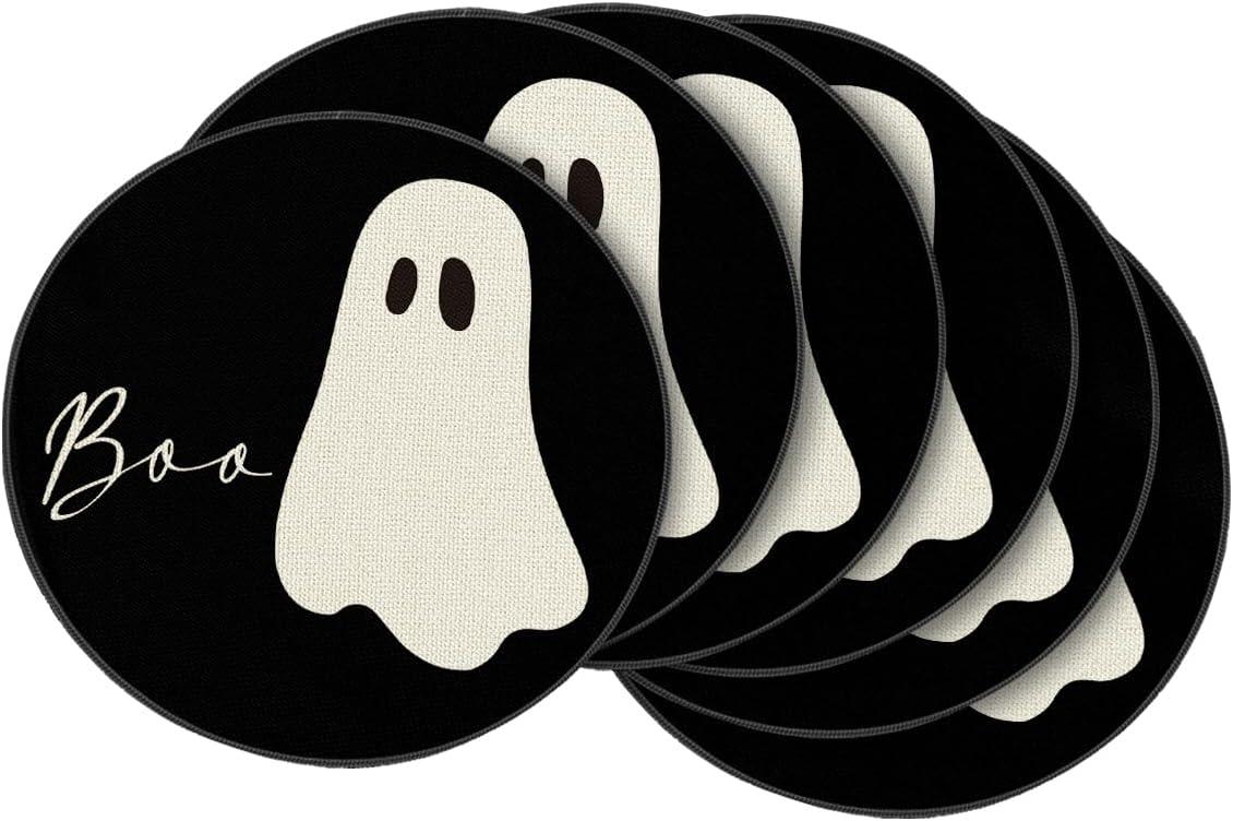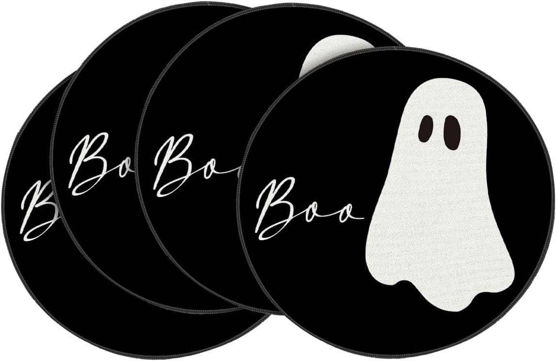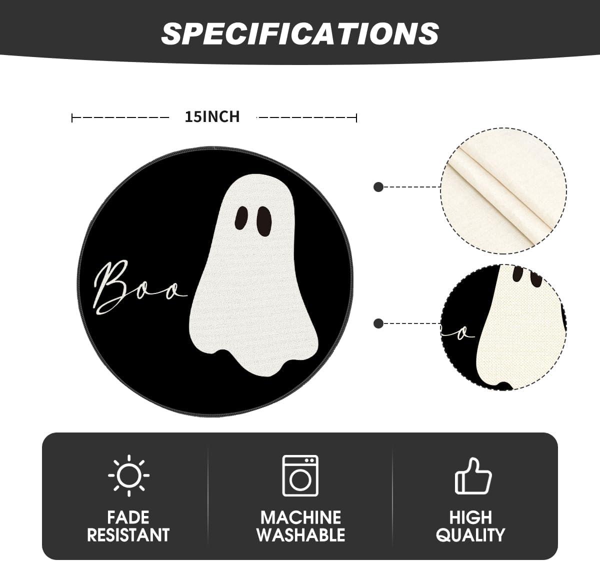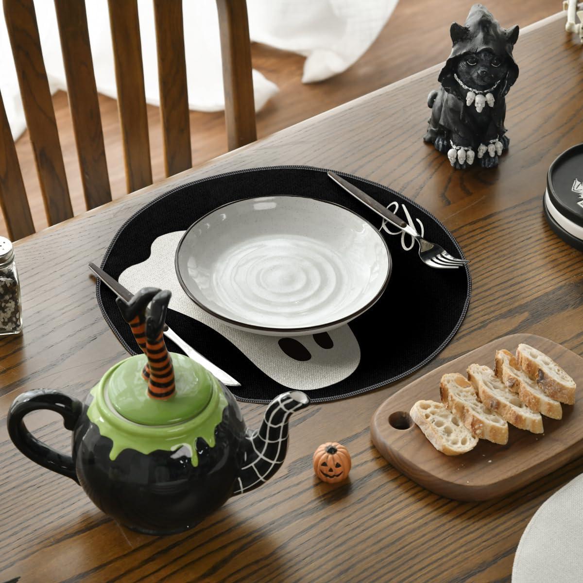 Artoid Mode Boo Ghost Halloween Placemats Set of 4, 12×18 Inch Seasonal Black Holiday Table Mats for Party Kitchen Dining Decoration(Black)