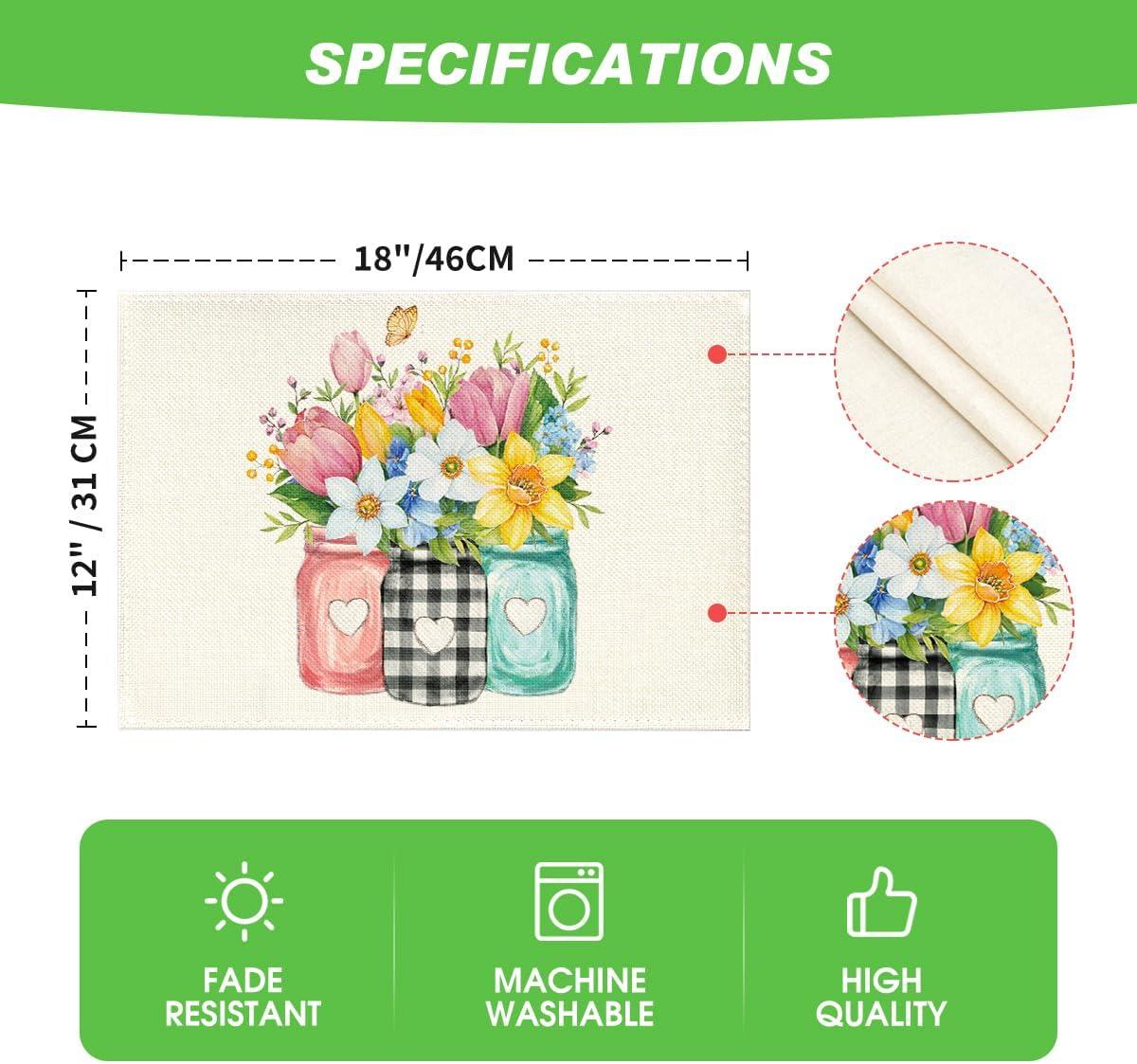 Easy to Clean: Machine wash and lay the placemat flat to dry. Stays the same and as new after every wash. Material: 100% Polyester, no shrink, no color ran. Imported, Country of origin: China