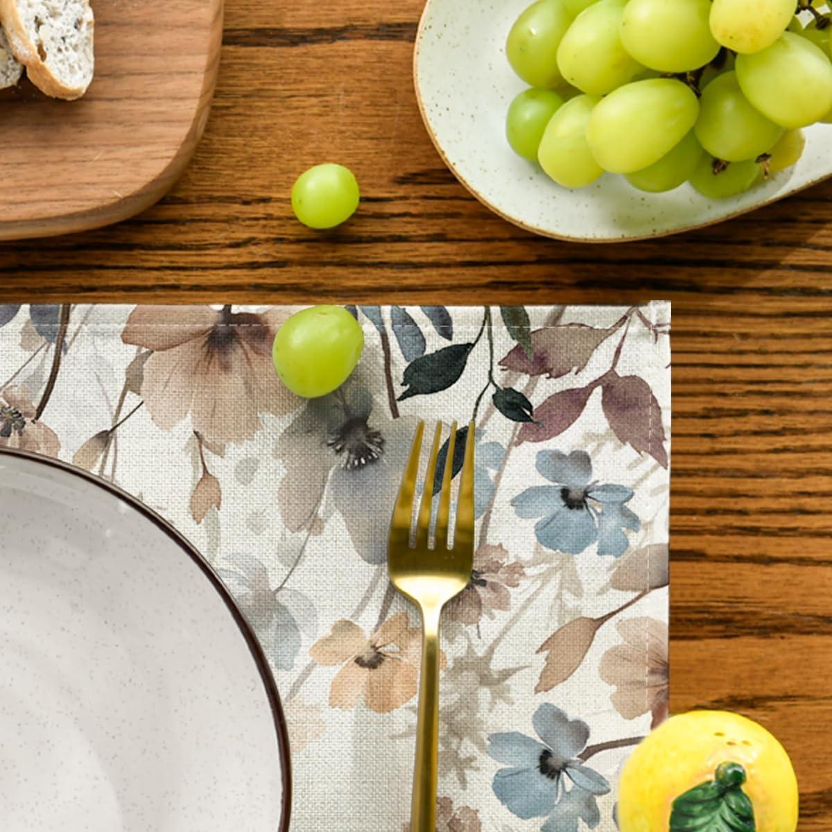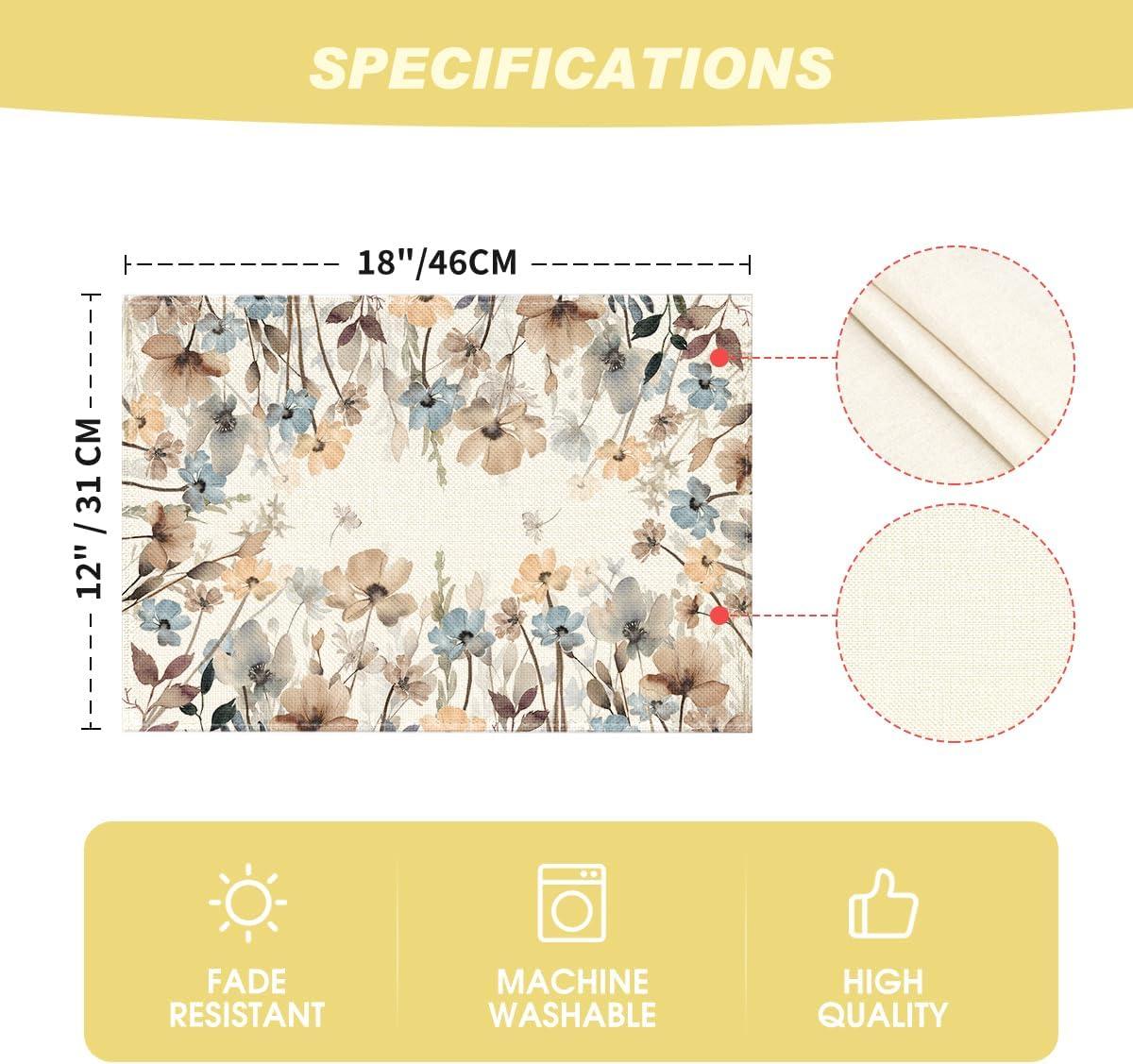 Artoid Mode Brown Poppy Flowers Floral Blossom Summer Placemats Set of 4,12×18 Inch Seasonal Fall Table Mats for Party Kitchen Dining Decoration