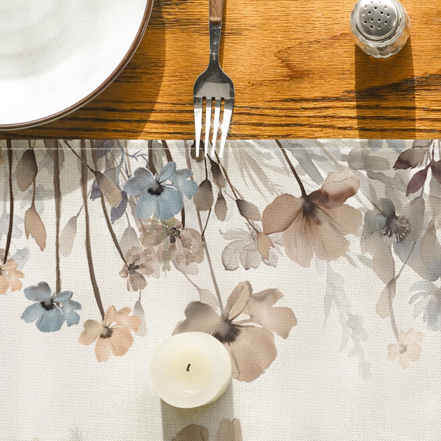 Artoid Mode Brown Poppy Flowers Floral Blossom Summer Table Runner, Fall Kitchen Dining Table Decoration for Home Party Decor 13×72 Inch(Brown)