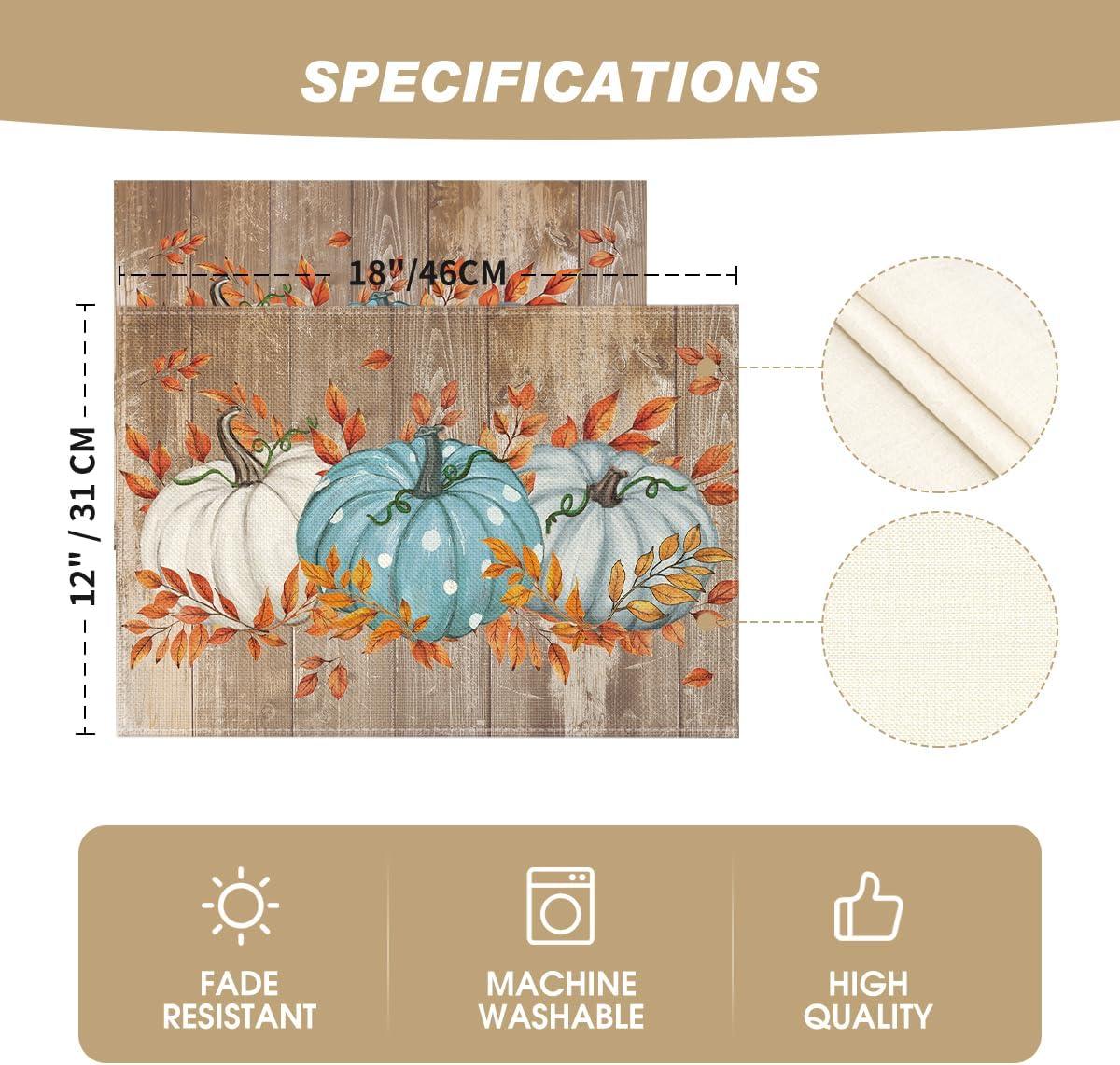 Easy to Clean: Machine wash and lay the placemat flat to dry. Stays the same and as new after every wash. Material: 100% Polyester, no shrink, no color ran. Imported, Country of origin: China