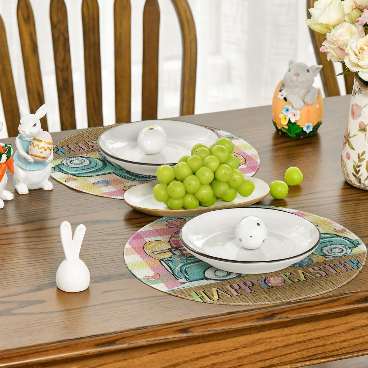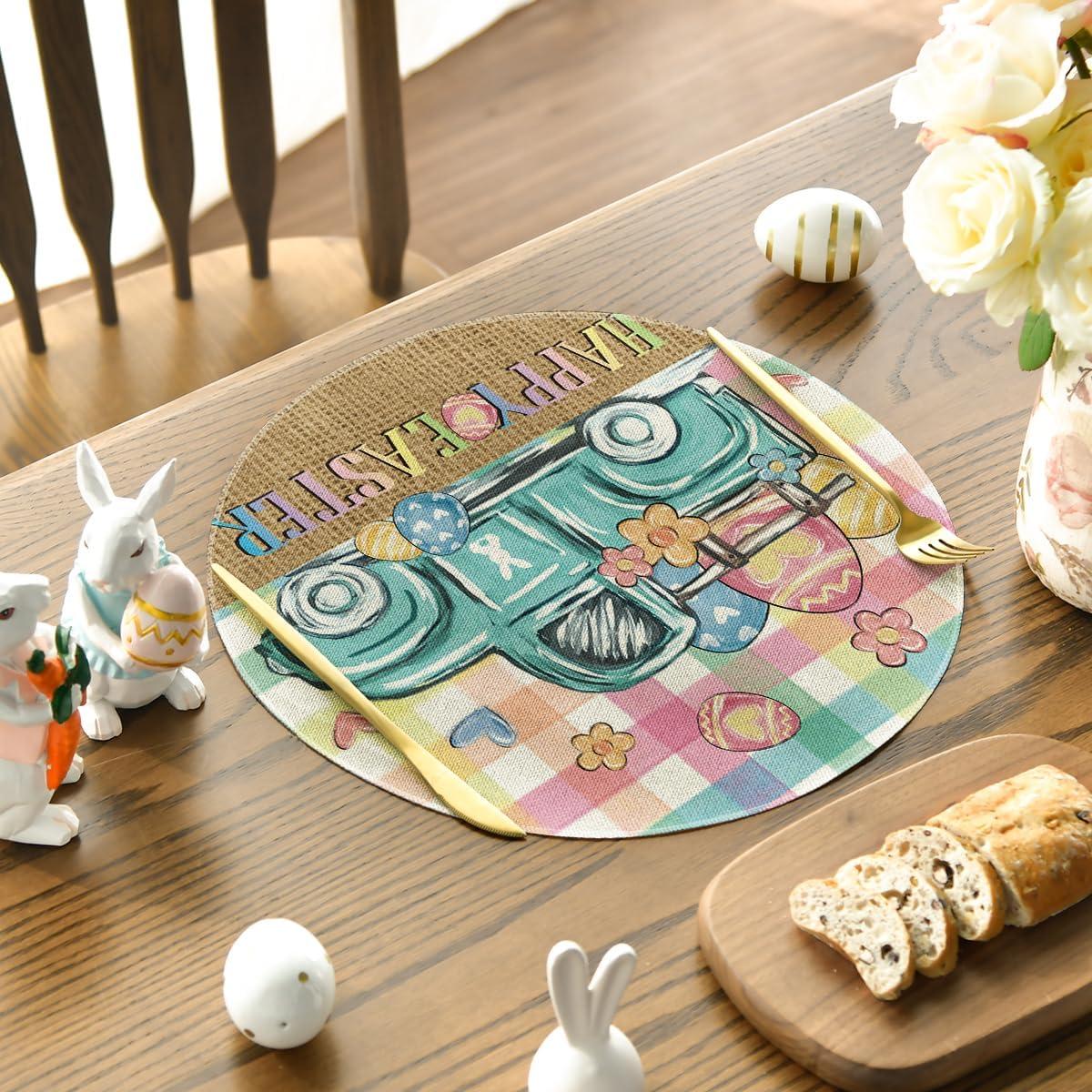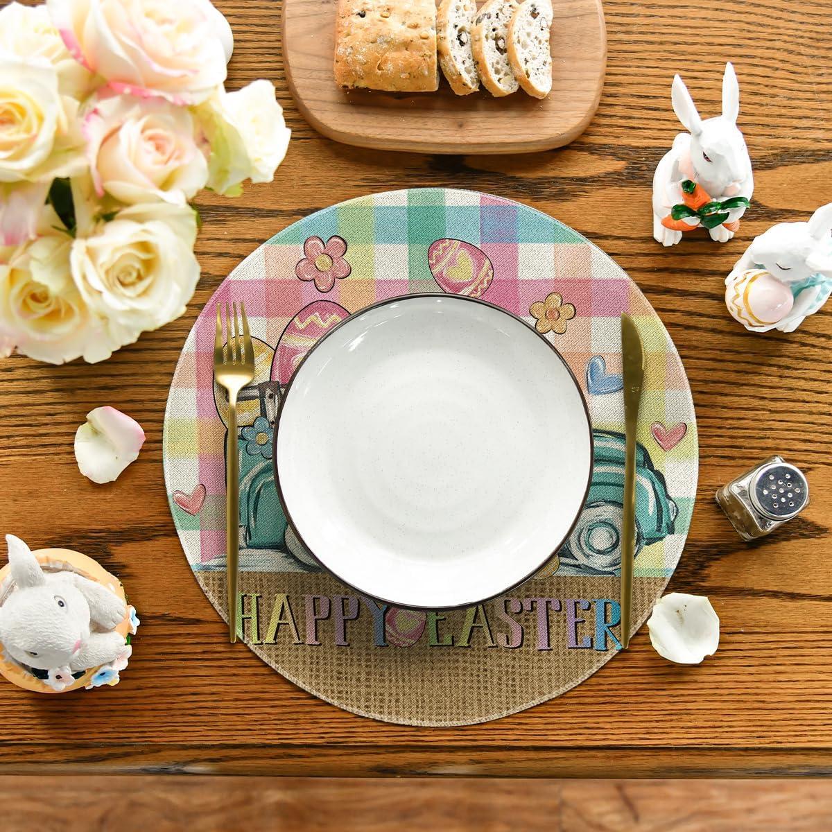 Artoid Mode Buffalo Plaid Carrot Egg Truck Daisy Happy Easter Placemats Set of 4, 12×18 Inch Seasonal Table Mats for Party Kitchen Dining Decoration(Pink)