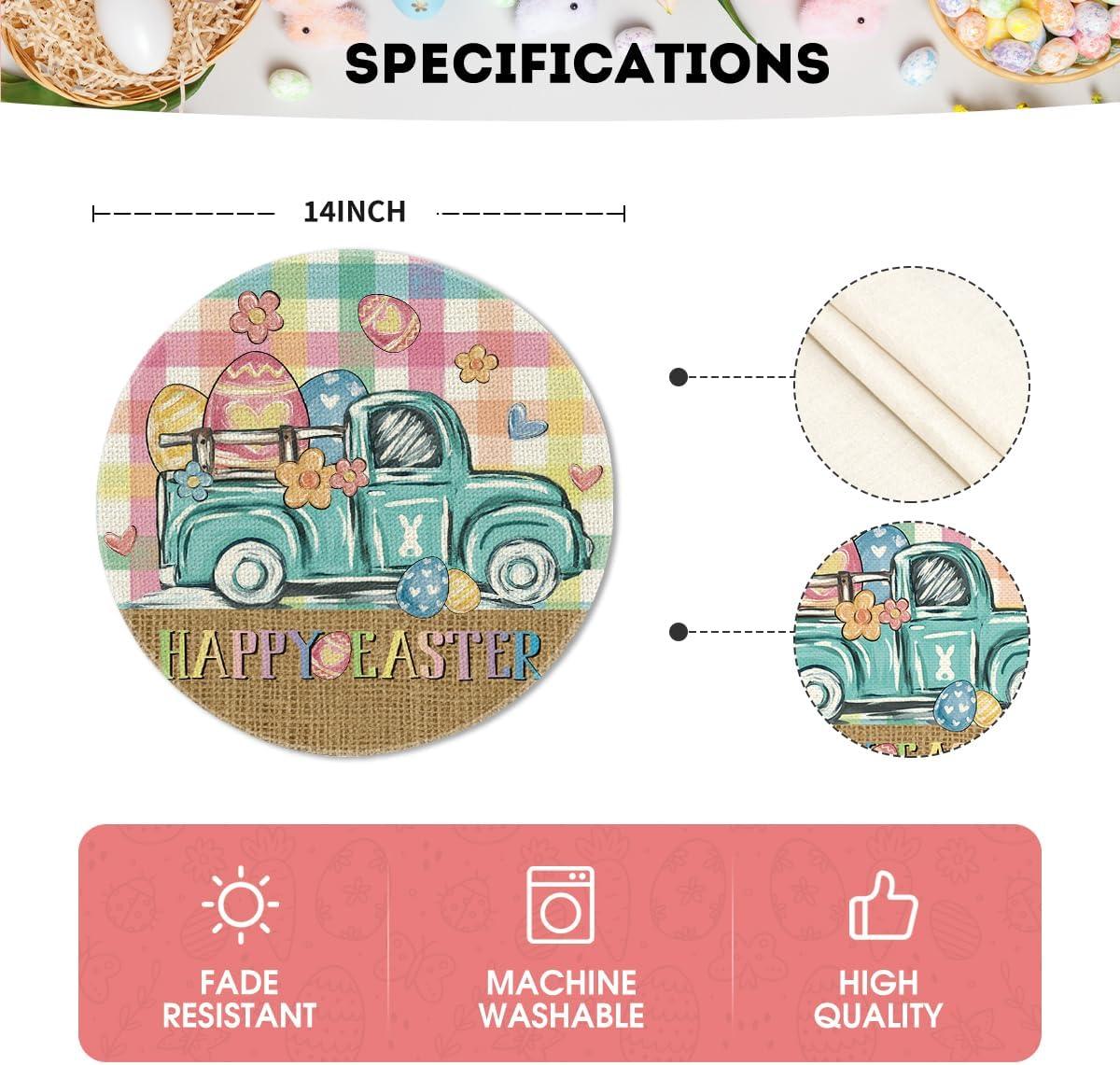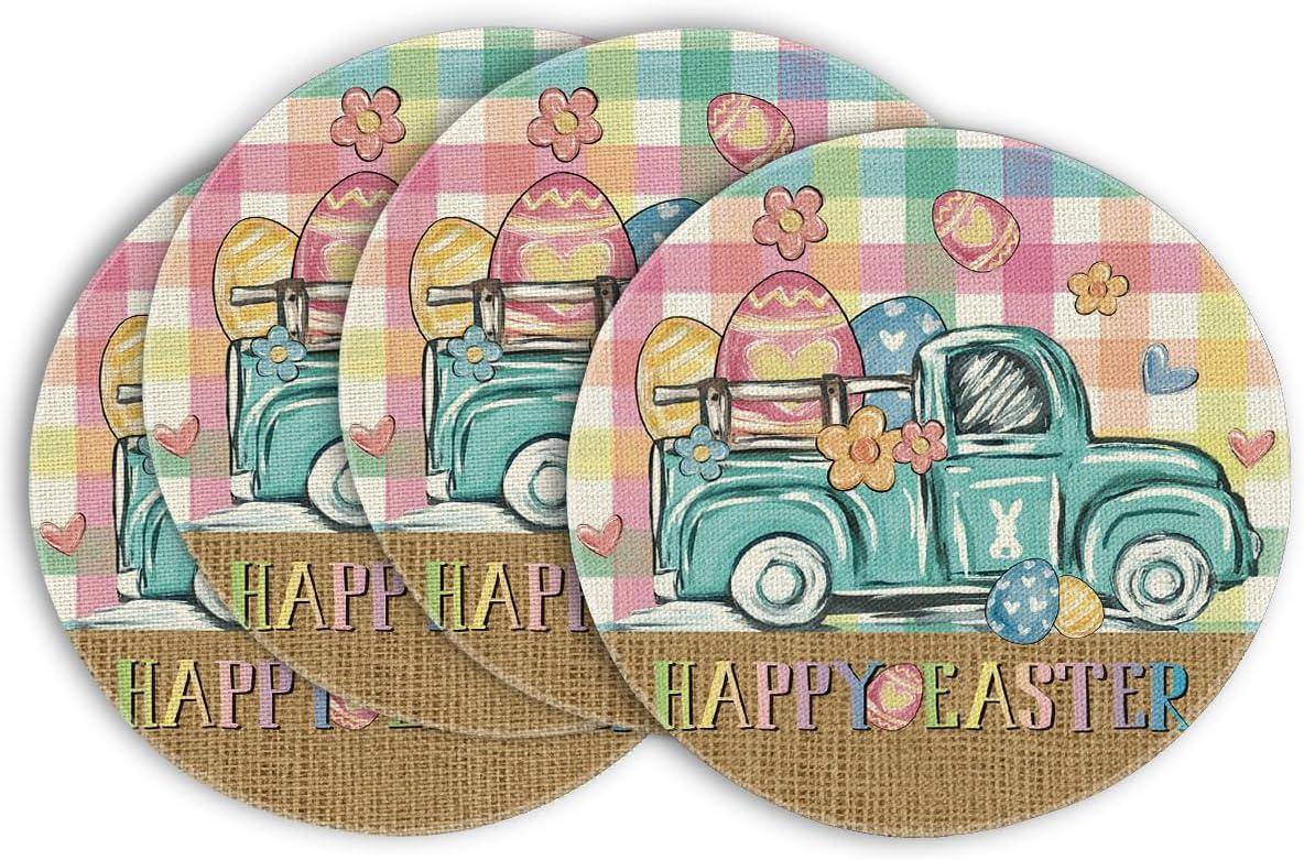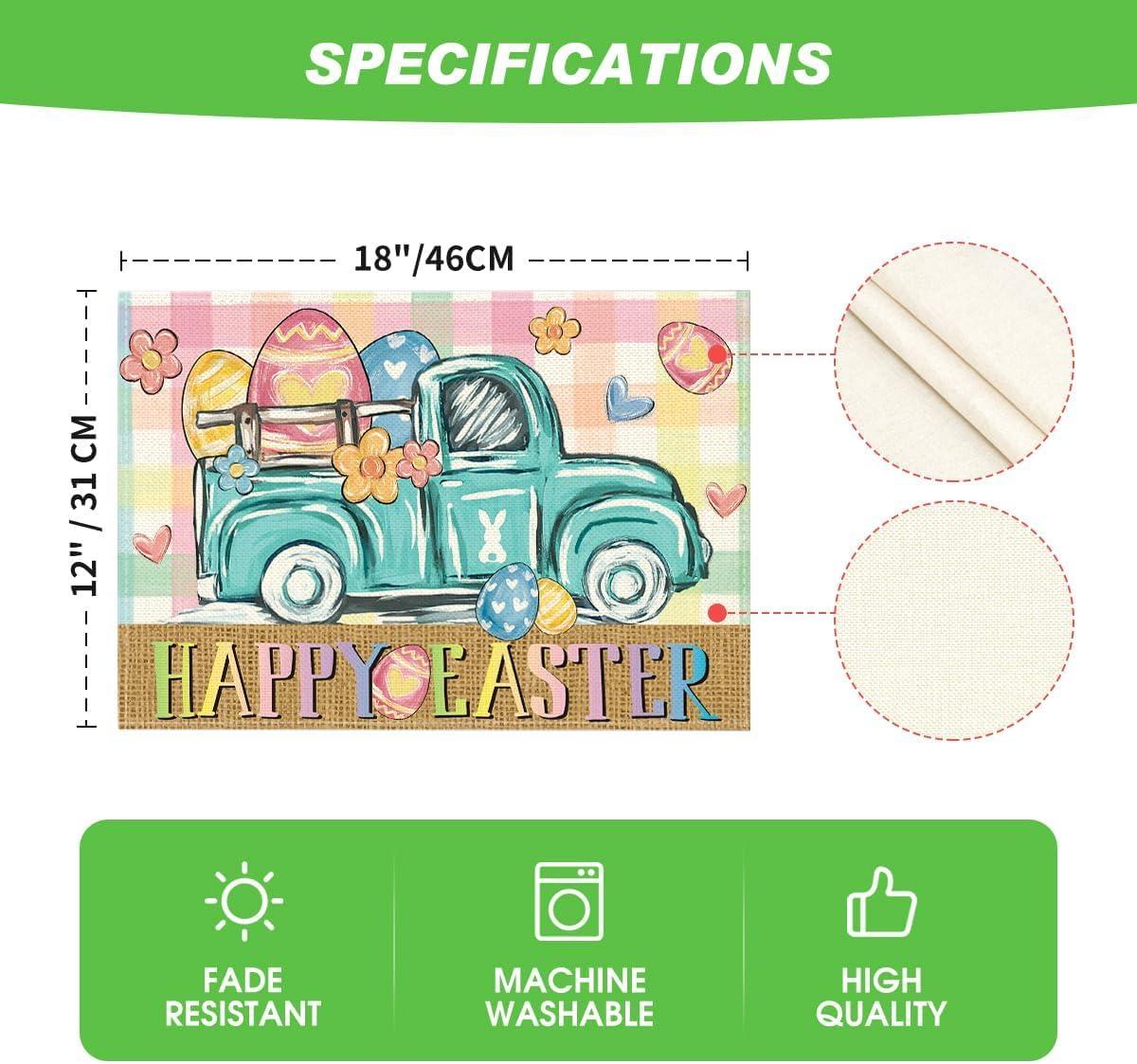 Artoid Mode Buffalo Plaid Carrot Egg Truck Daisy Happy Easter Placemats Set of 4, 12×18 Inch Seasonal Table Mats for Party Kitchen Dining Decoration(Pink)