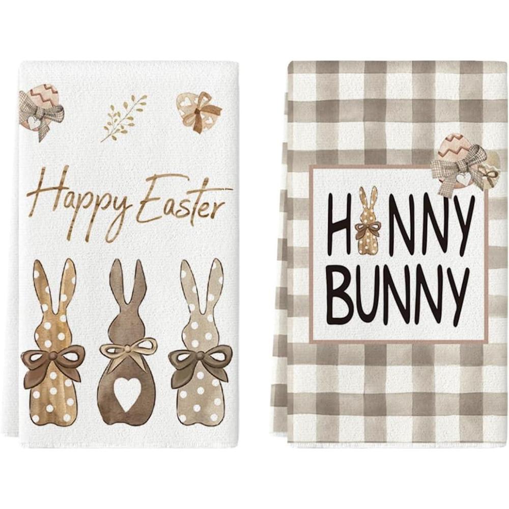 Artoid Mode Buffalo Plaid Carrots Wood Rabbit Hunny Bunny Happy Easter Kitchen Towels Dish Towels, 18×26 Inch Seasonal Spring Summer Holiday Decoration Hand Towels Set of 2