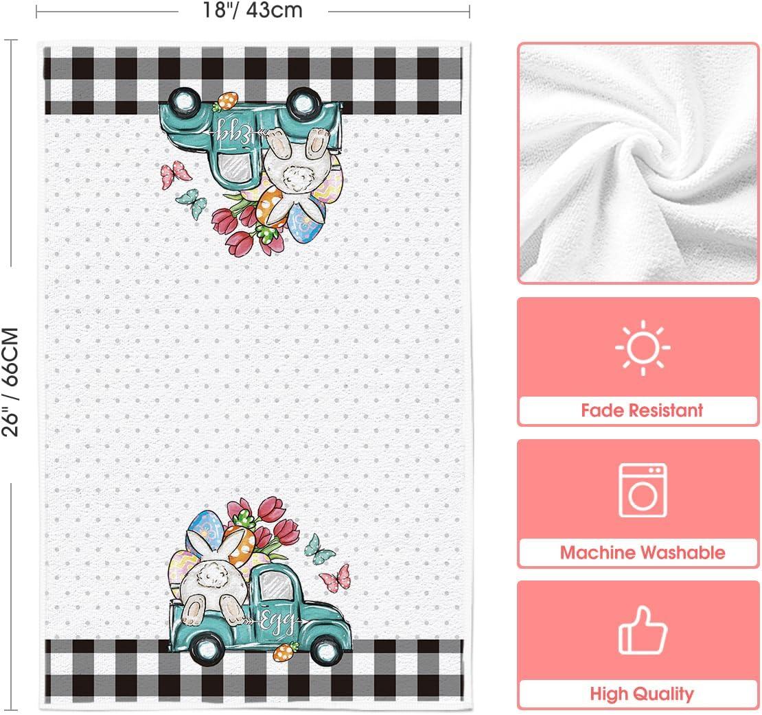 Artoid Mode Buffalo Plaid Gnome Egg Truck Bunny Rabbit Easter Kitchen Towels Dish Towels, 18×26 Inch Seasonal Spring Decoration Hand Towels Set of 2