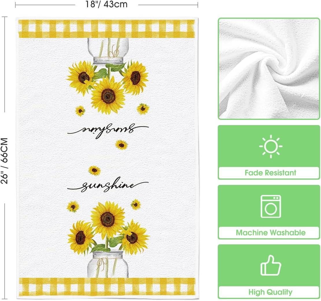 Artoid Mode Buffalo Plaid Hello Sunshine Sunflowers Love Summer Kitchen Towels Dish Towels, 18×26 Inch Farmhouse Decoration Hand Towels Set of 4(Yellow/White)