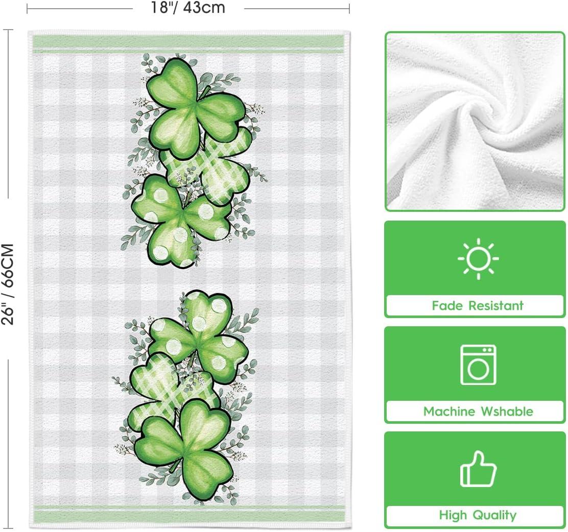 Artoid Mode Buffalo Plaid Kisses Wishes Shamrock St Patrick’s Day Kitchen Towels Dish Towels, 18×26 Inch Seasonal Eucalyptus Leaves Decor Hand Towels Set of 4(Beige)