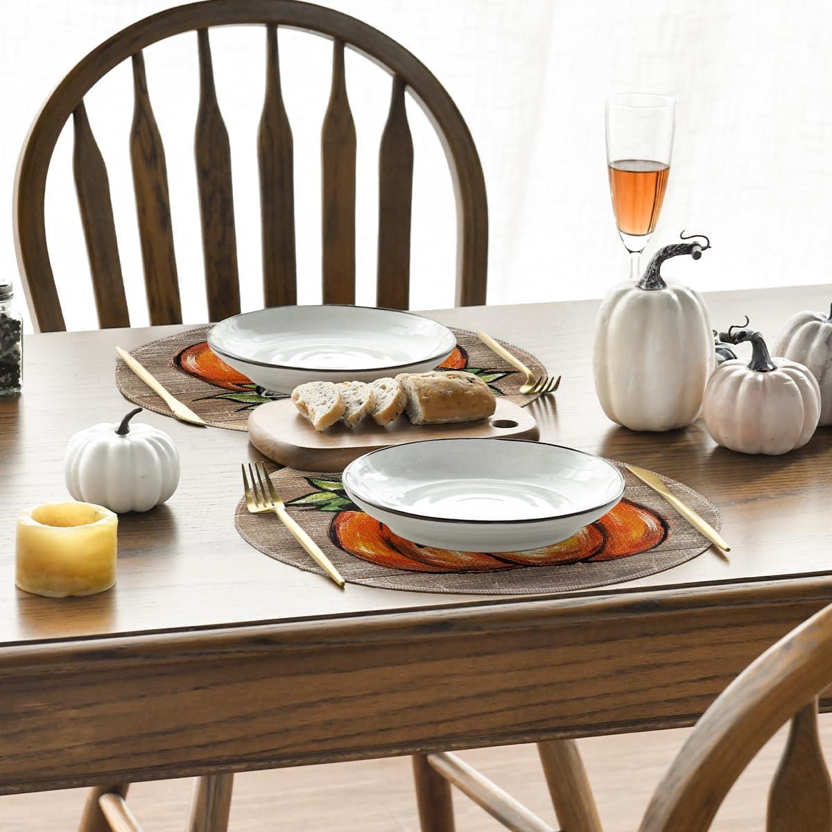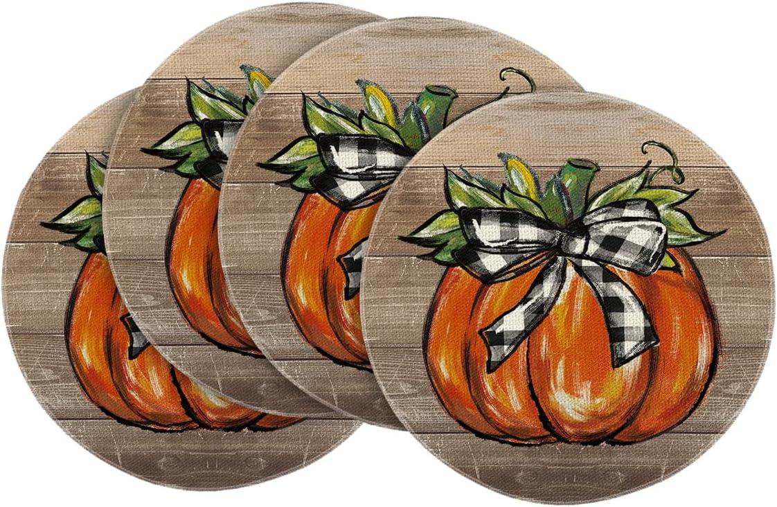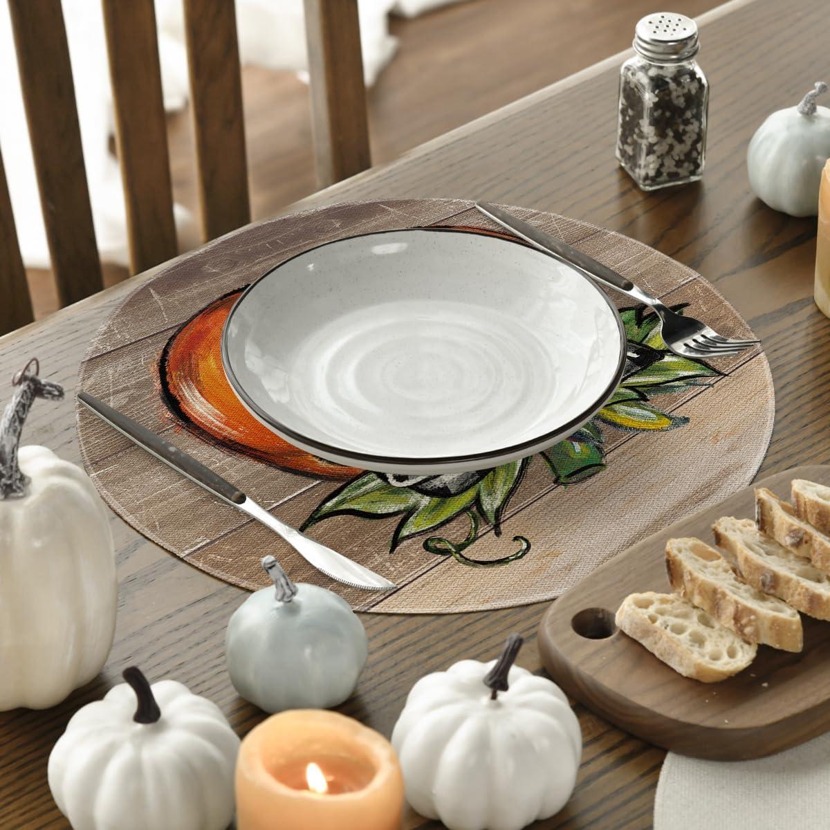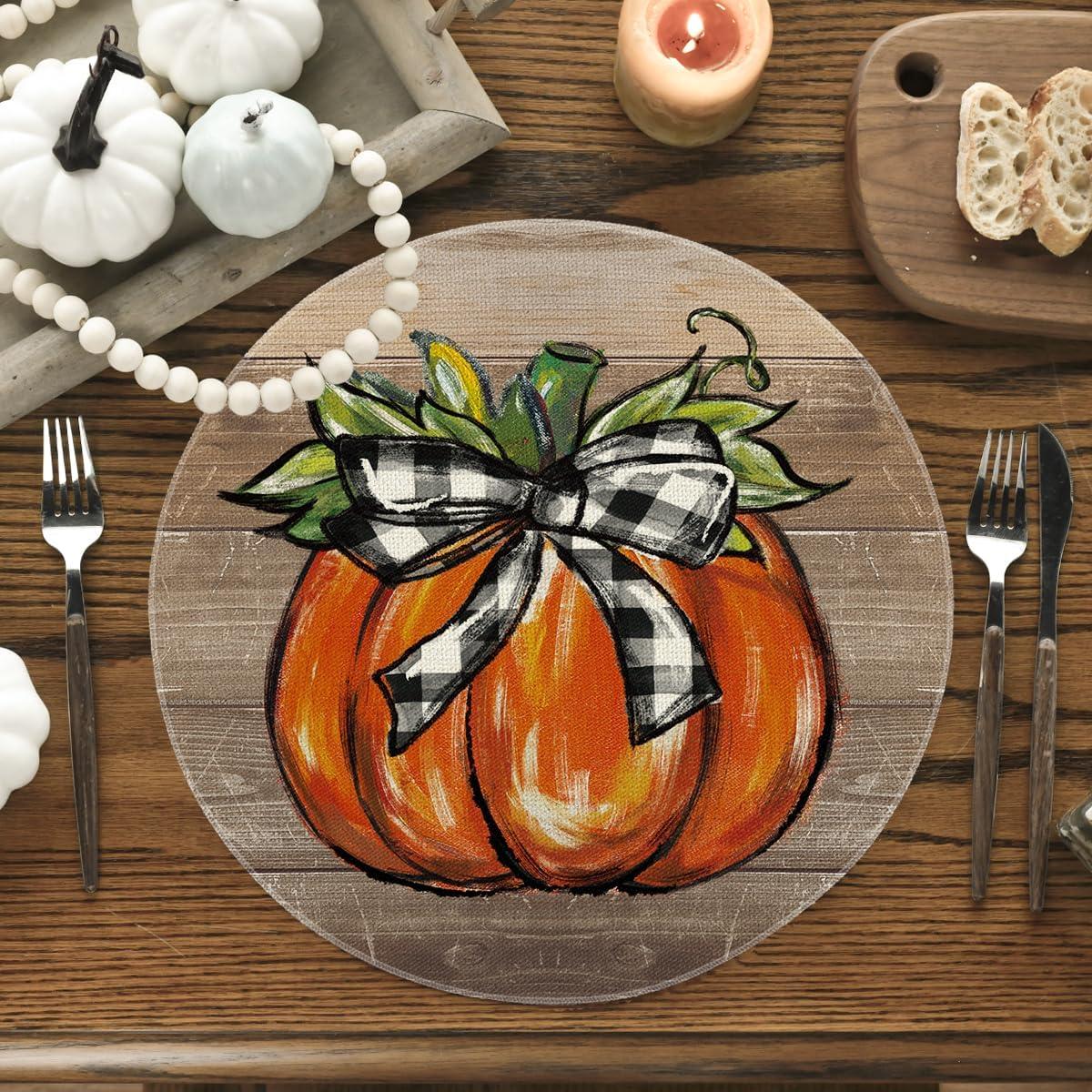 Artoid Mode Buffalo Plaid Pumpkin Fall Placemats Set of 4, 12×18 Inch Seasonal Autumn Table Mats for Party Kitchen Dining Decoration(Wood)