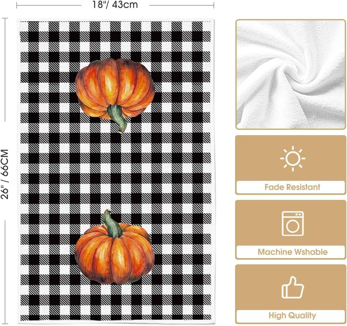 Artoid Mode Buffalo Plaid Pumpkin Hello Fall Kitchen Towels Dish Towels, 18×26 Inch Seasonal Decoration Hand Towels Set of 2(Black)