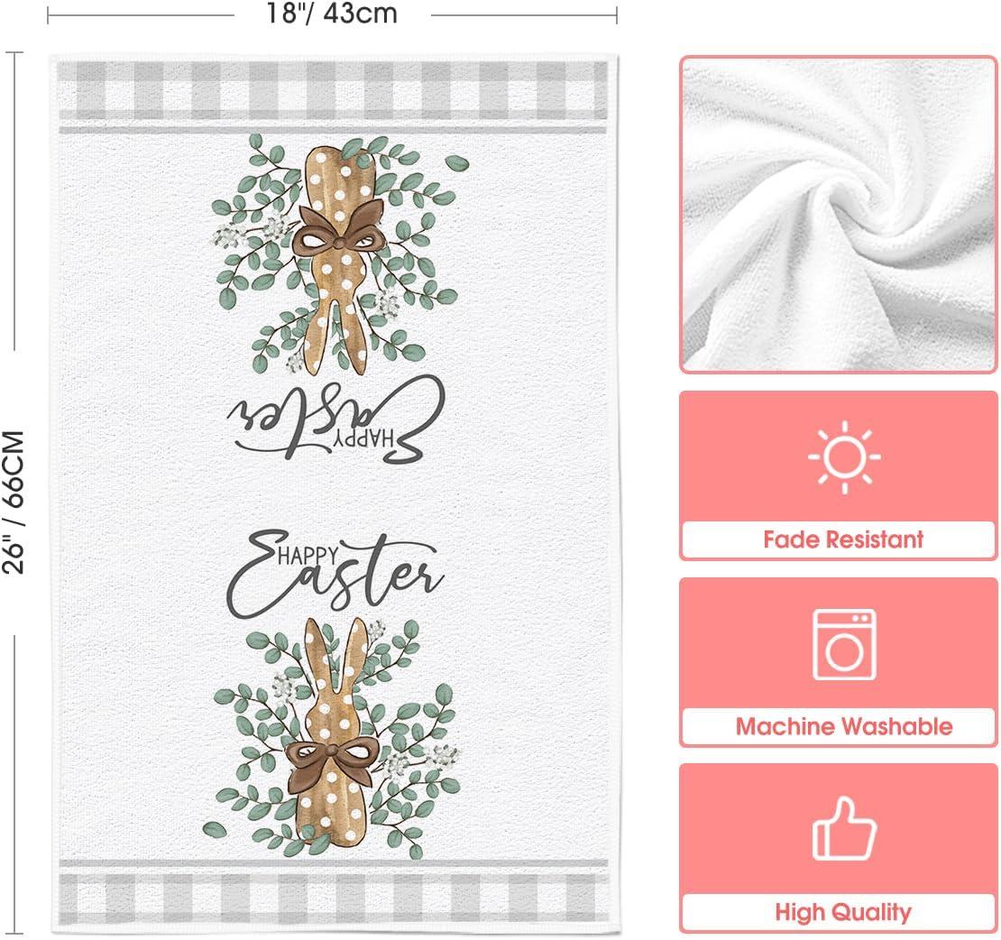 Artoid Mode Buffalo Plaid Rabbit Bunny Eucalyptus Easter Kitchen Towels Dish Towels, 18×26 Inch Spring Decoration Hand Towels Set of 2