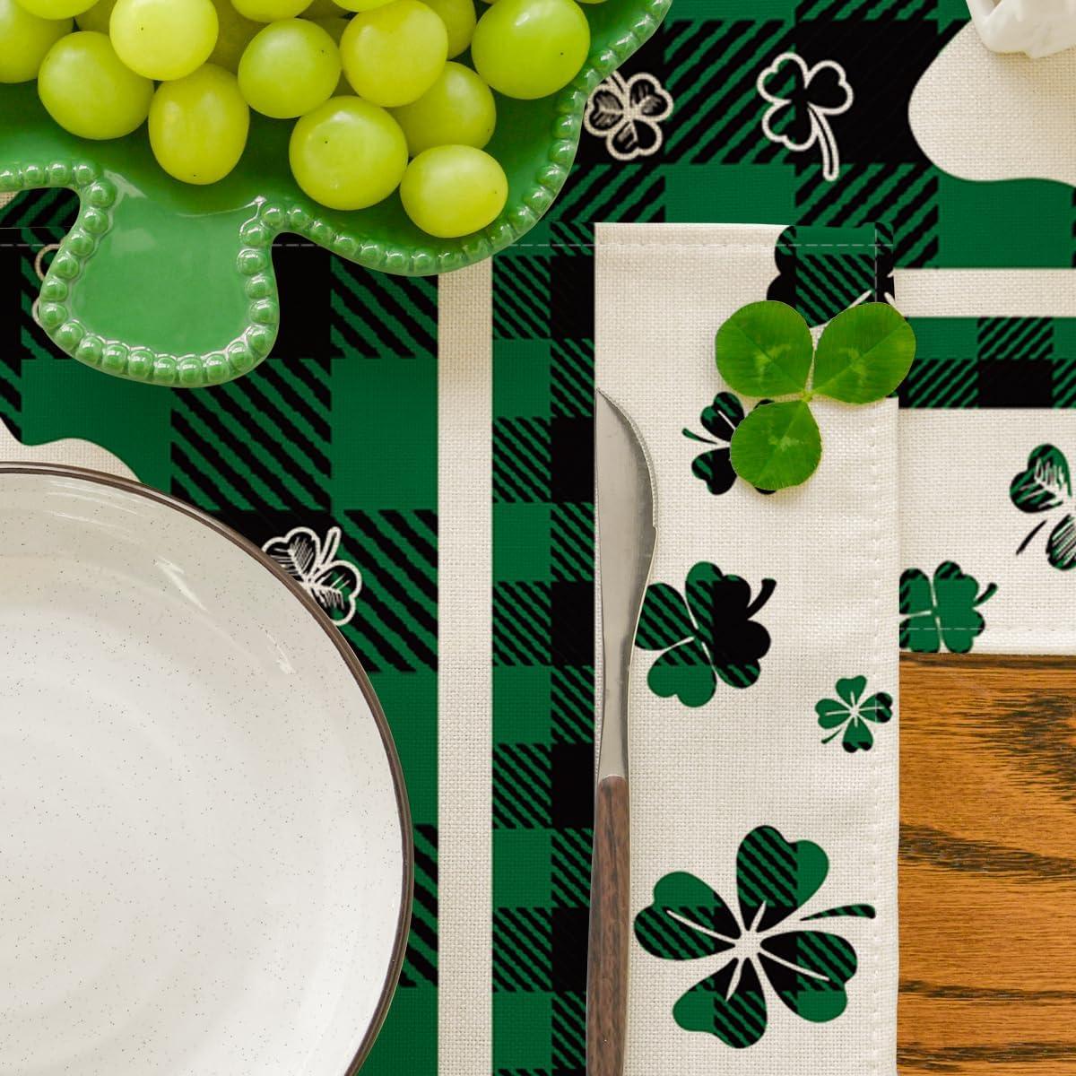 Artoid Mode Buffalo Plaid Shamrock St. Patrick’s Day Placemats Set of 4, 12×18 Inch Seasonal Holiday Table Mats for Party Kitchen Dining Decoration(Green)