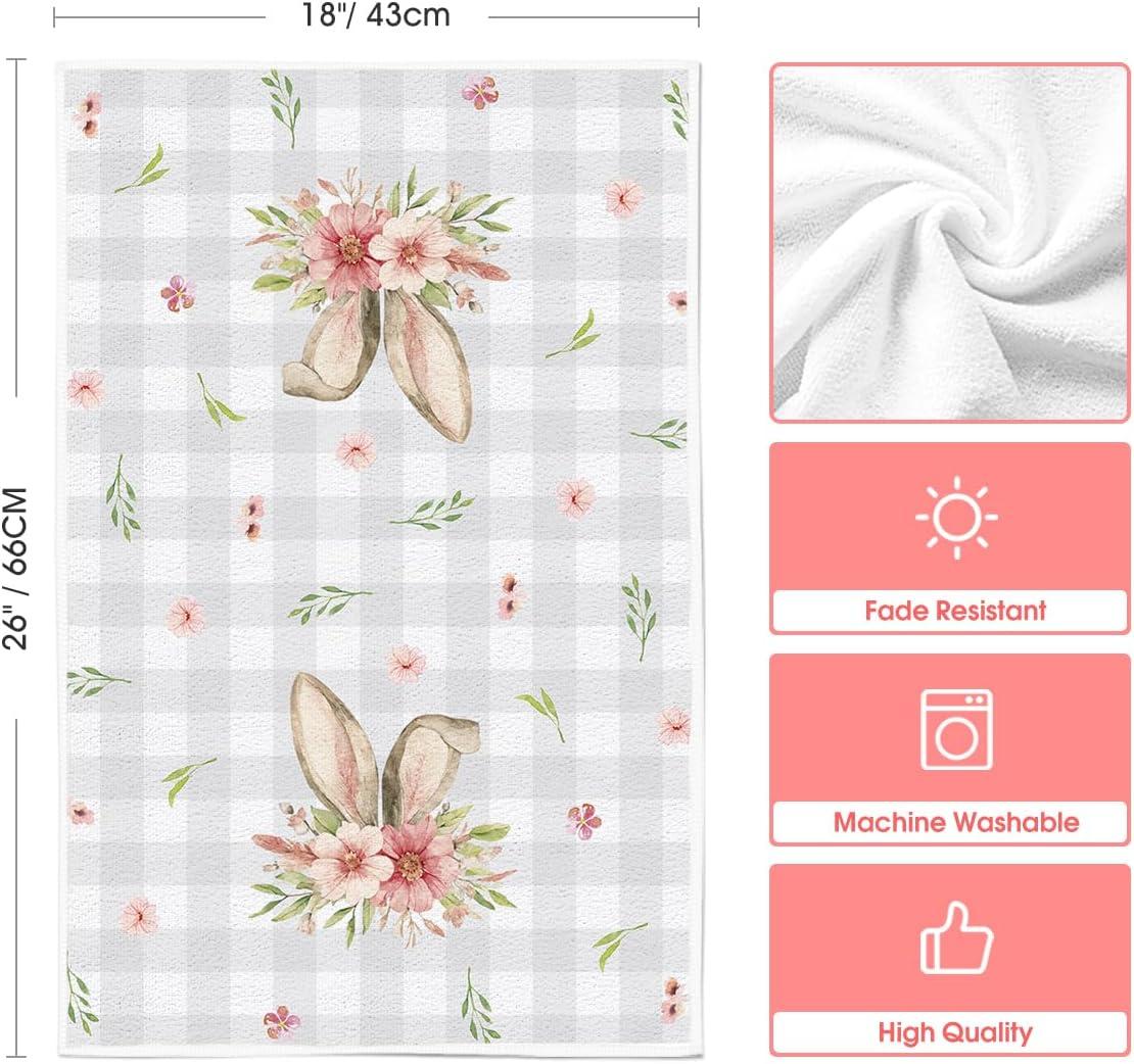 Artoid Mode Bunny Honny Branch Flower Happy Easter Kitchen Towels Dish Towels, 18×26 Inch Seasonal Egg Decoration Hand Towels Set of 4(Beige)