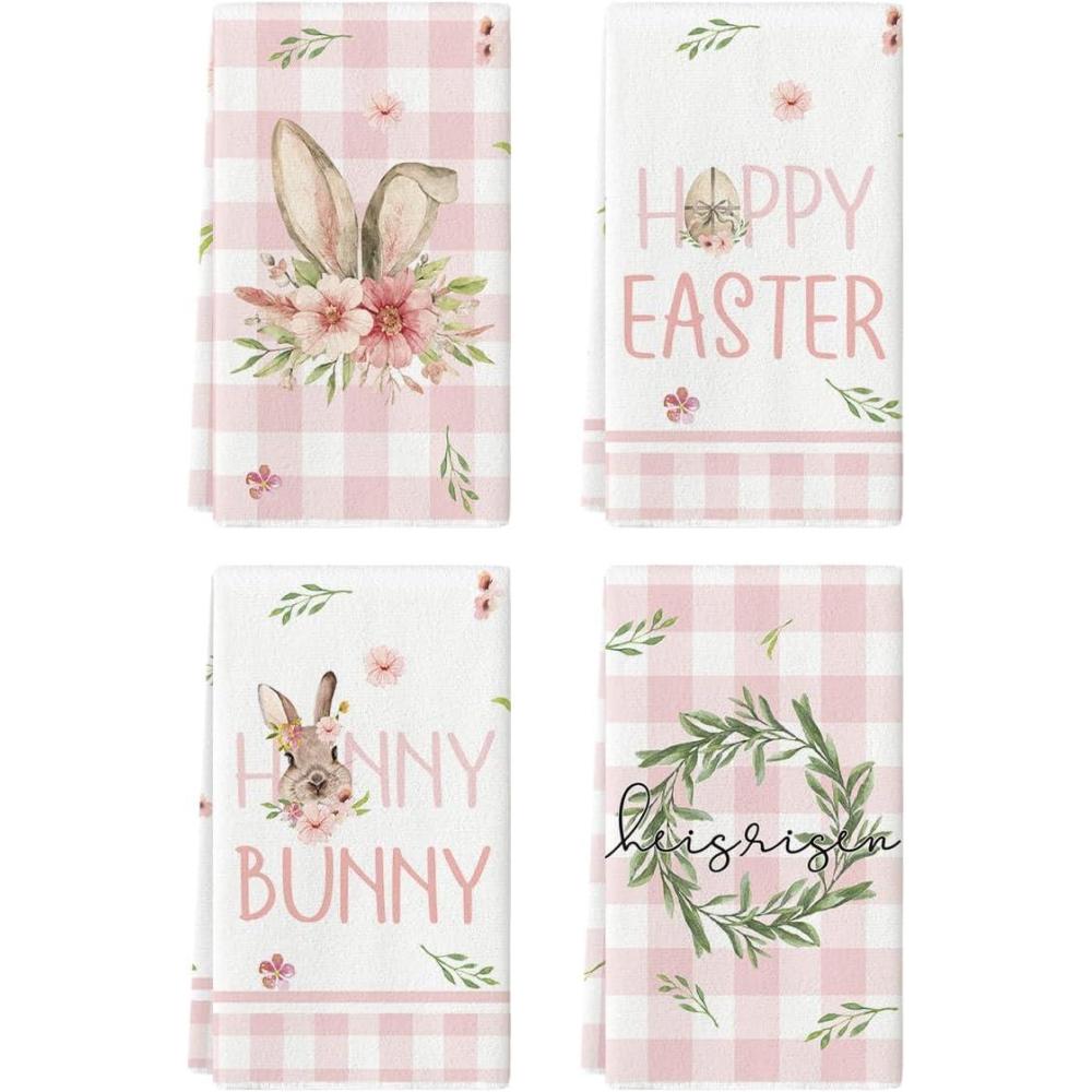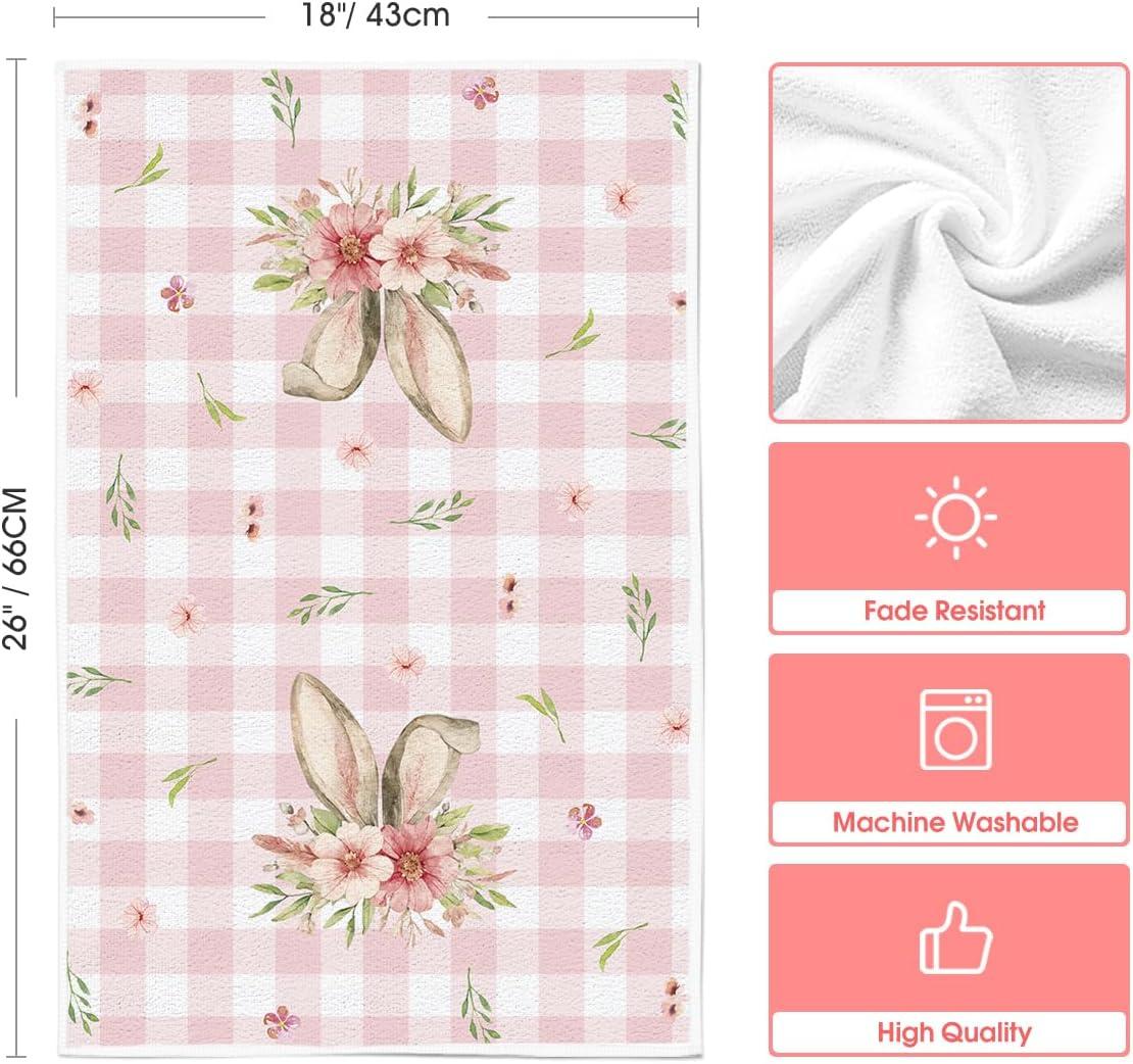 Artoid Mode Bunny Honny Branch Flower Happy Easter Kitchen Towels Dish Towels, 18×26 Inch Seasonal Egg Decoration Hand Towels Set of 4(Pink)