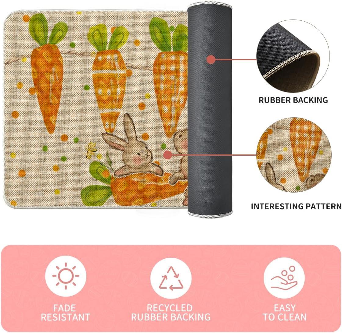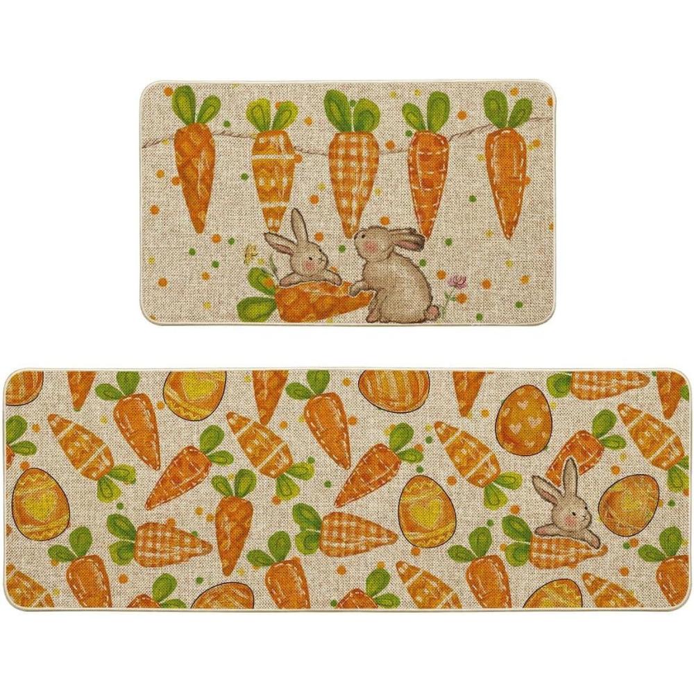 Artoid Mode Carrot Rabbit Bunny Egg Easter Kitchen Mats Set of 2, Spring Home Decor Low-Profile Kitchen Rugs for Floor – 17×29 and 17×47 Inch(Yellow)