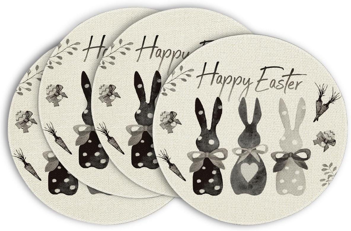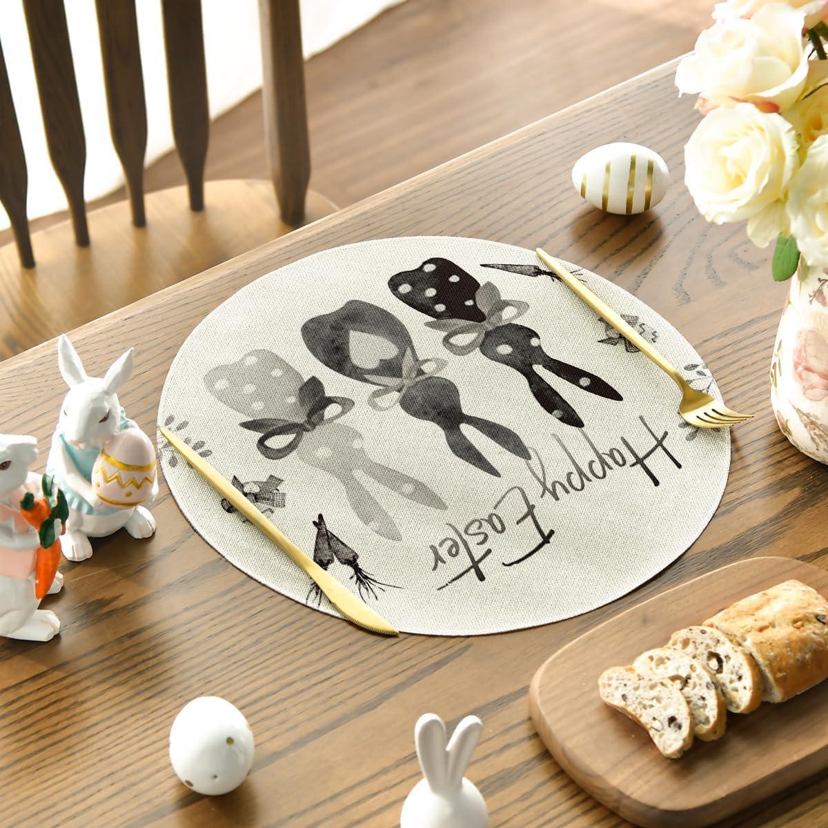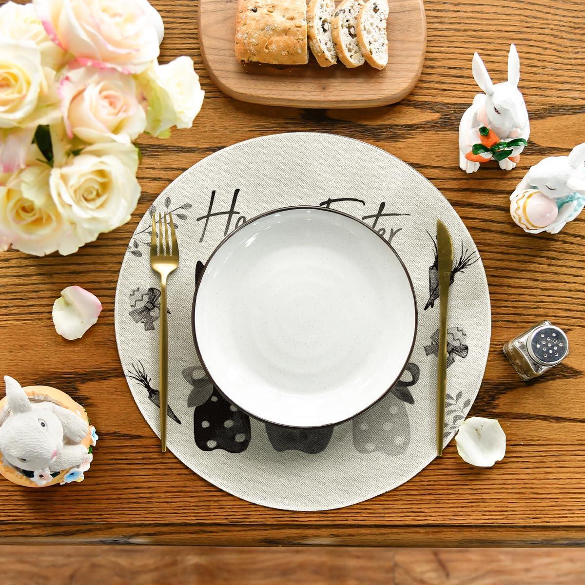 Artoid Mode Carrots Rabbit Bunny Happy Easter Round Placemats Set of 4, 15 Inch Spring Round Table Mats for Dining Decoration(Black)